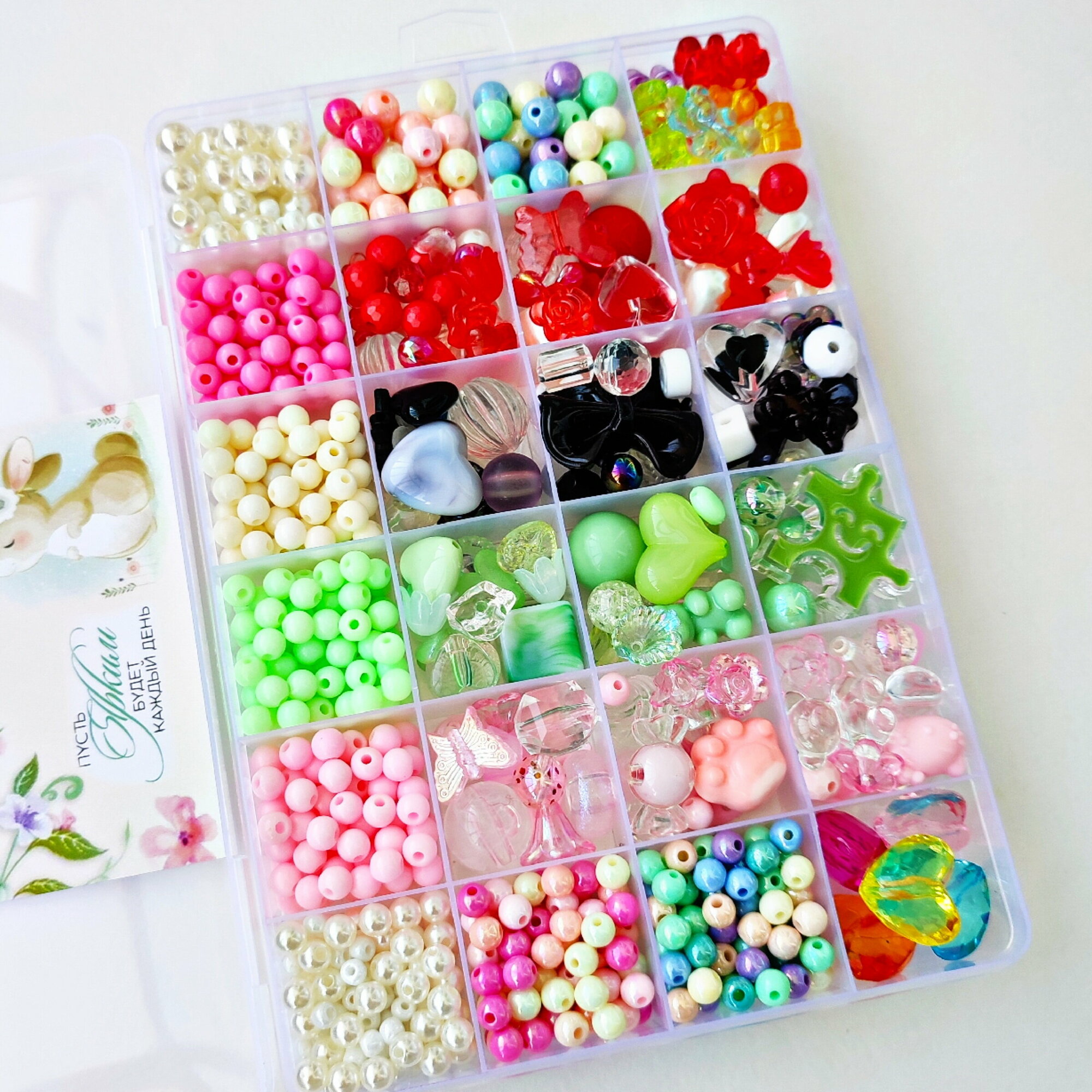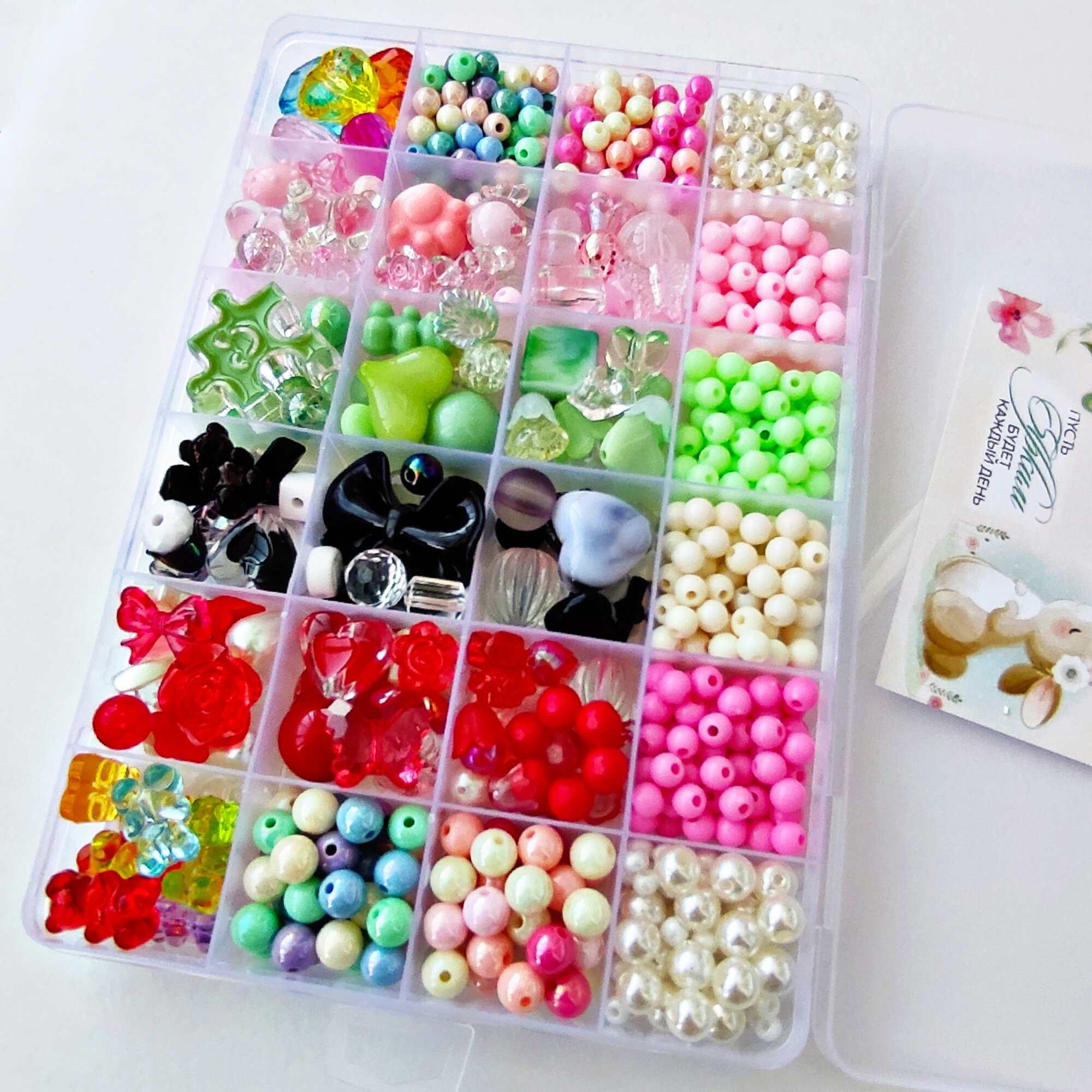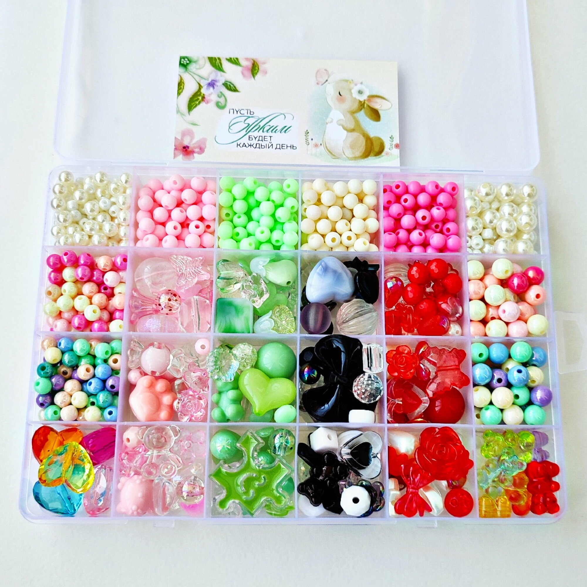 Набор крупных бусин в контейнере для создания украшений, браслетов, бус, 1000 шт. интересное: