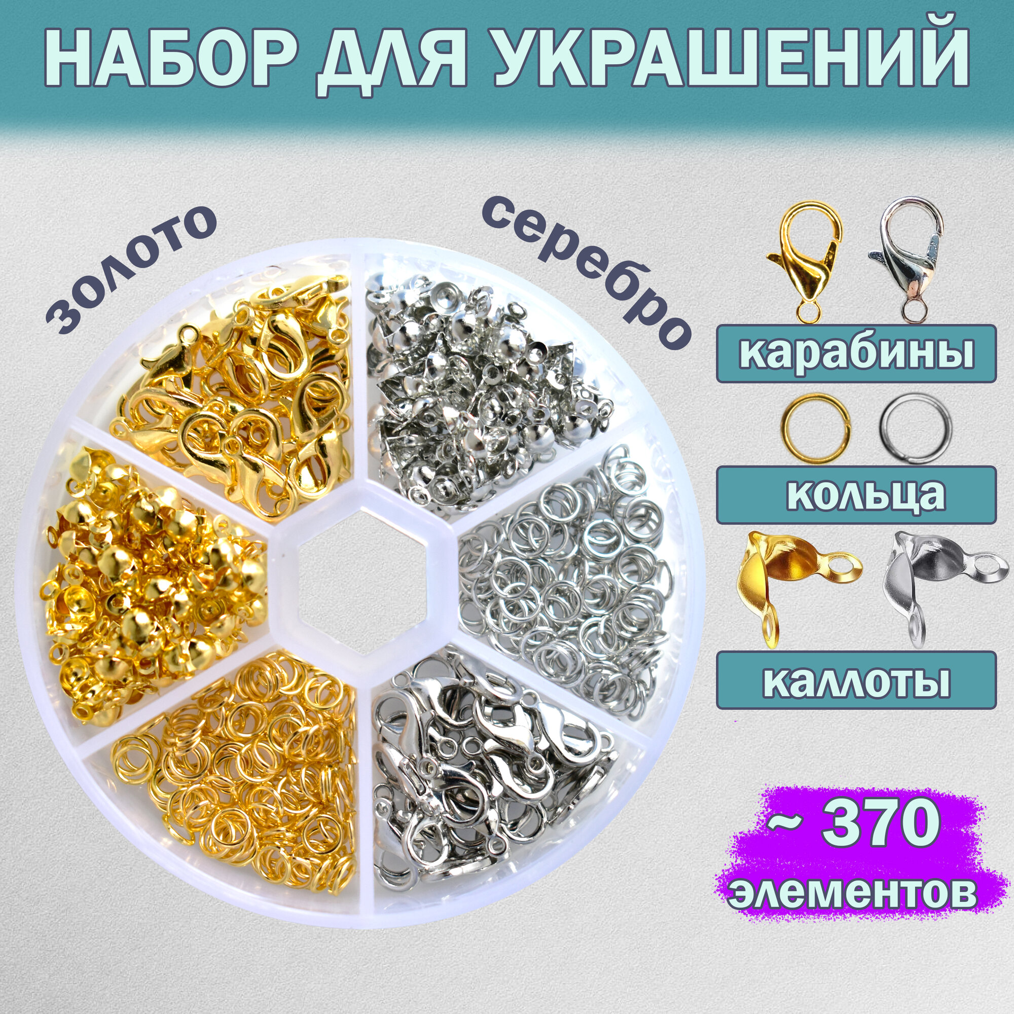 Набор для создания украшений своими руками/ DKiSerg/ соединительные кольца, карабины, каллоты для рукоделия, творчества интересное: