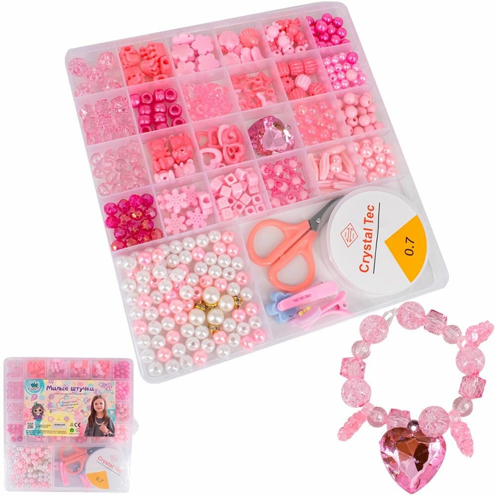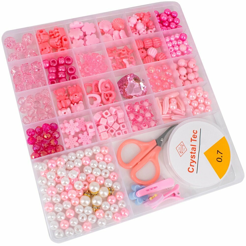 Большой набор для создания украшений для девочки, 25 видов бусин, 2 заколки для волос, 20 х 19 х 2 см, N088-8/FCJ0877333 интересное: