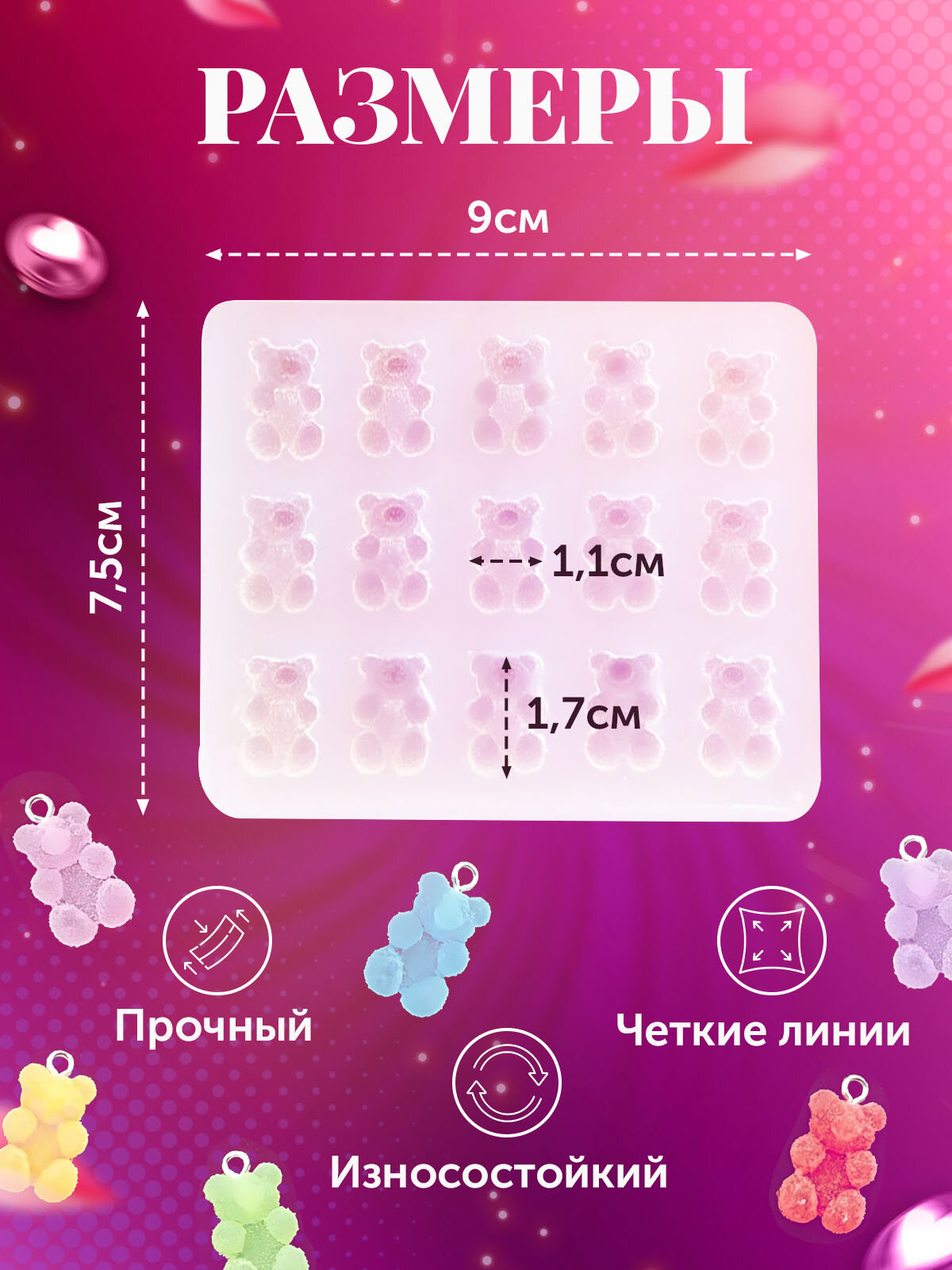 Ниже Вы можете прочитать отзывы на Молд мишки - формочка для эпоксидной смолы для изготовления украшений, ознакомится с подробными характеристиками, посмотреть интересные обзоры и фотографии на Молд мишки - формочка для эпоксидной смолы для изготовления украшений.