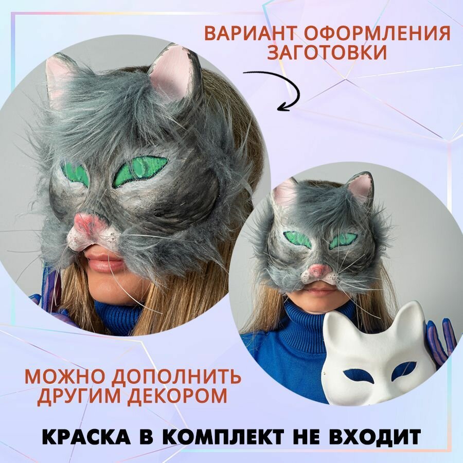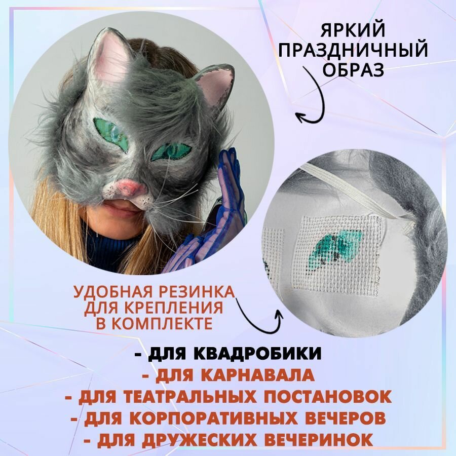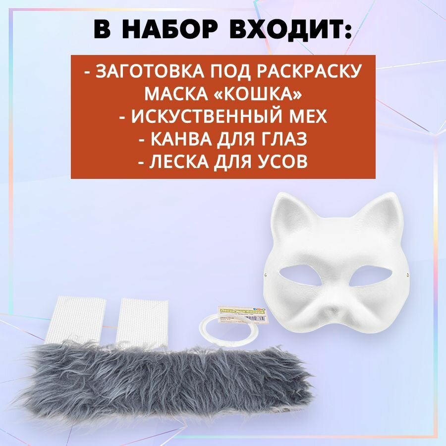 Набор для создания карнавальной маски "Кошка", маска, канва, леска, мех серый, 1 шт. интересное: