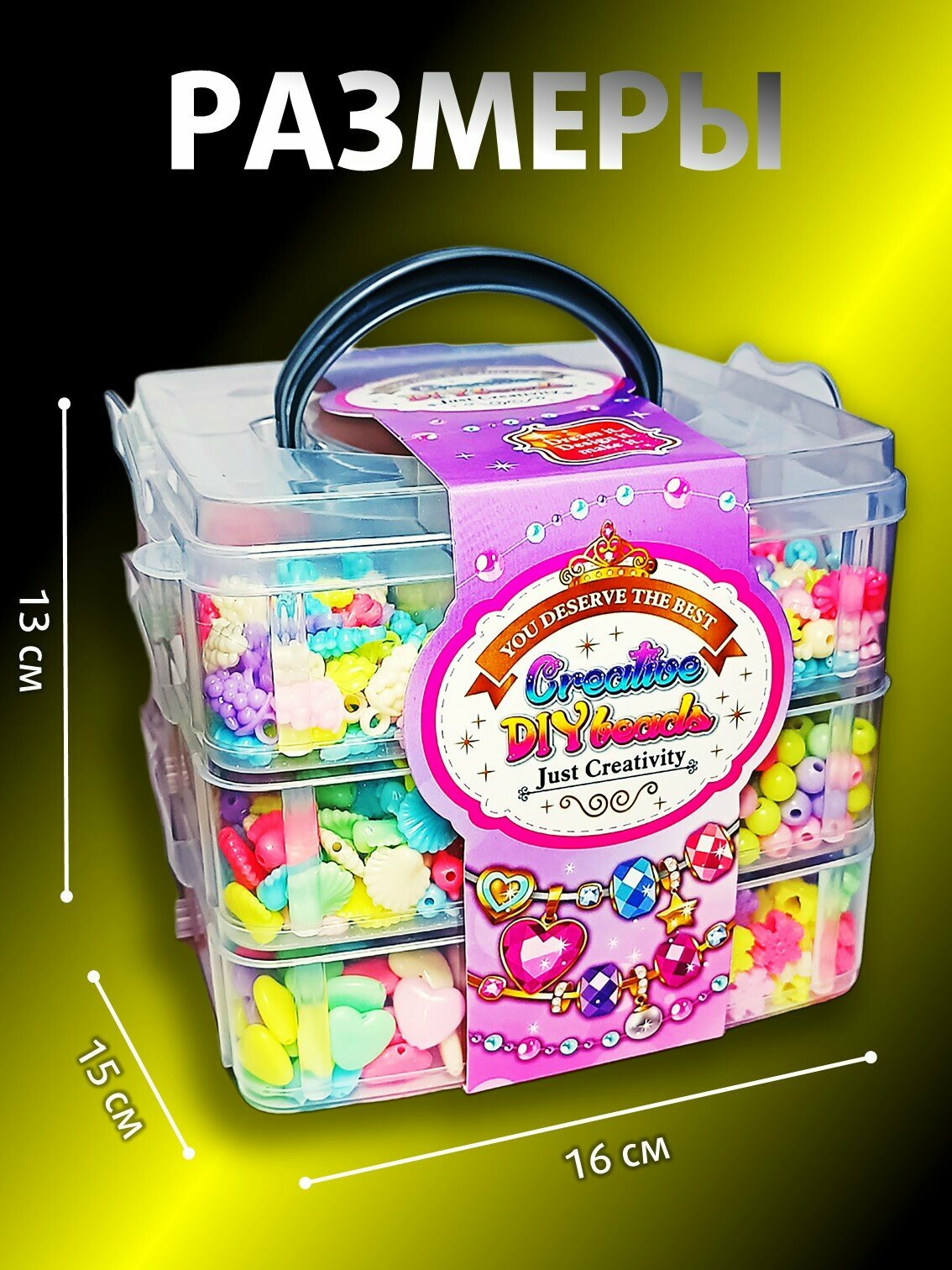 Купить Набор бусин для творчества и рукоделия, создание браслетов и украшений для девочек, в 3-х ярусном органайзере вар.1