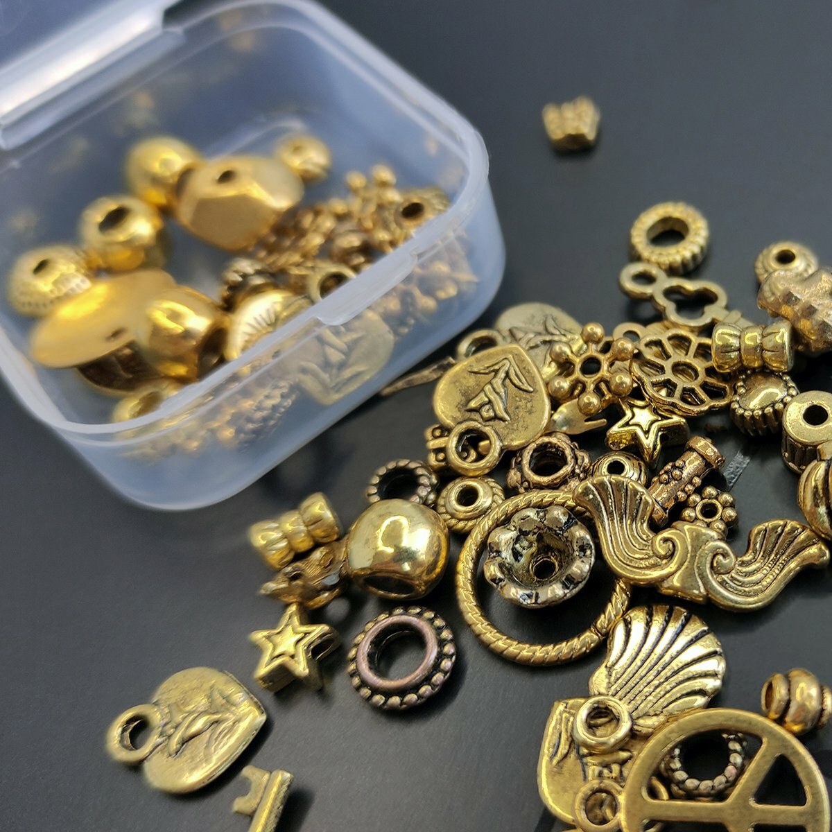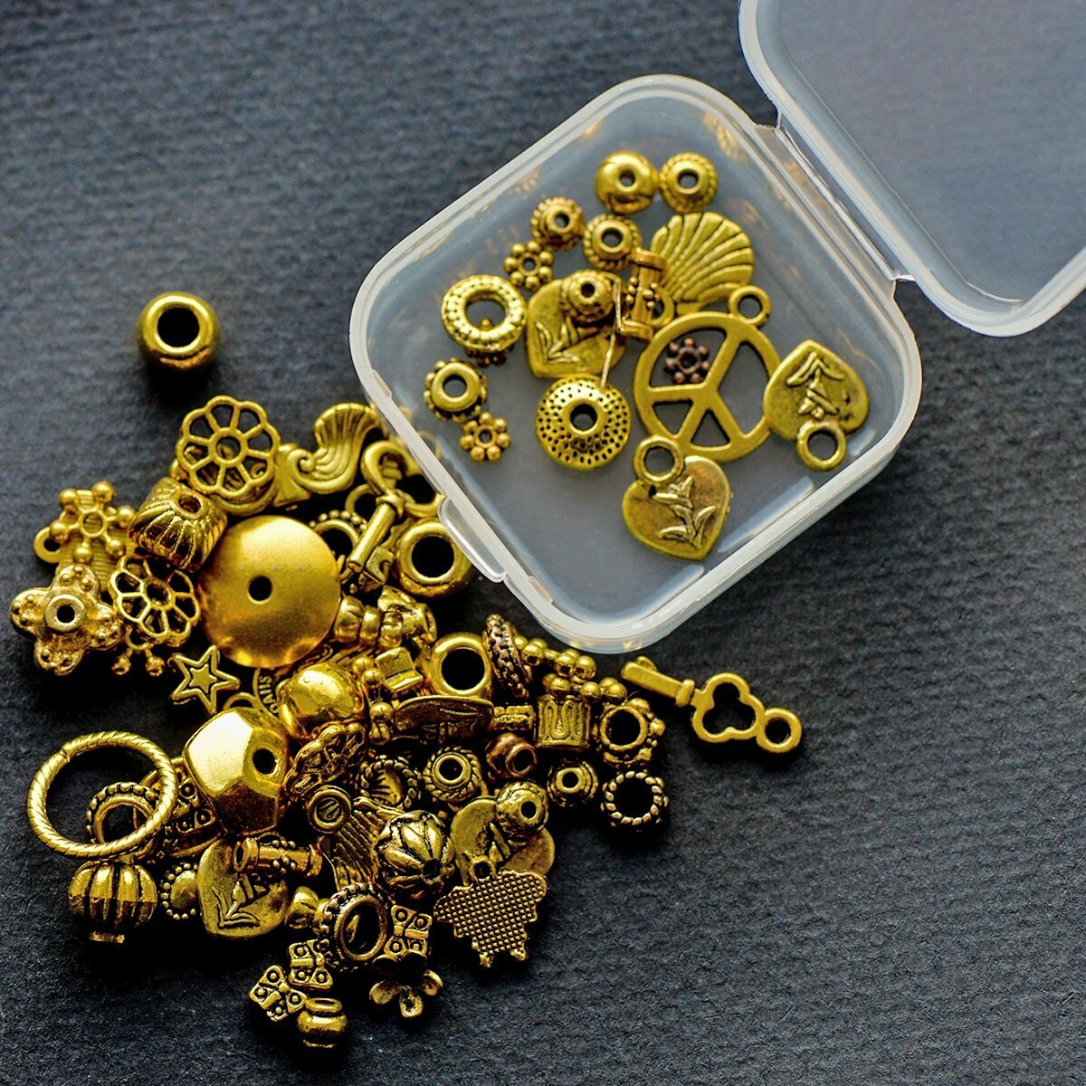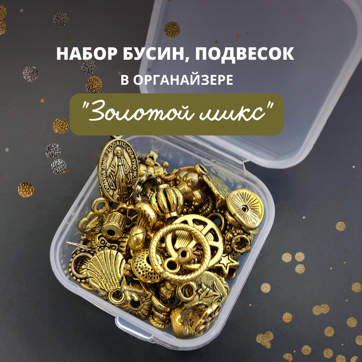 Набор Бусин, Шапочек и Подвесок в органайзере "Золотой микс" для создания сережек, браслетов / для детского творчества интересное:
