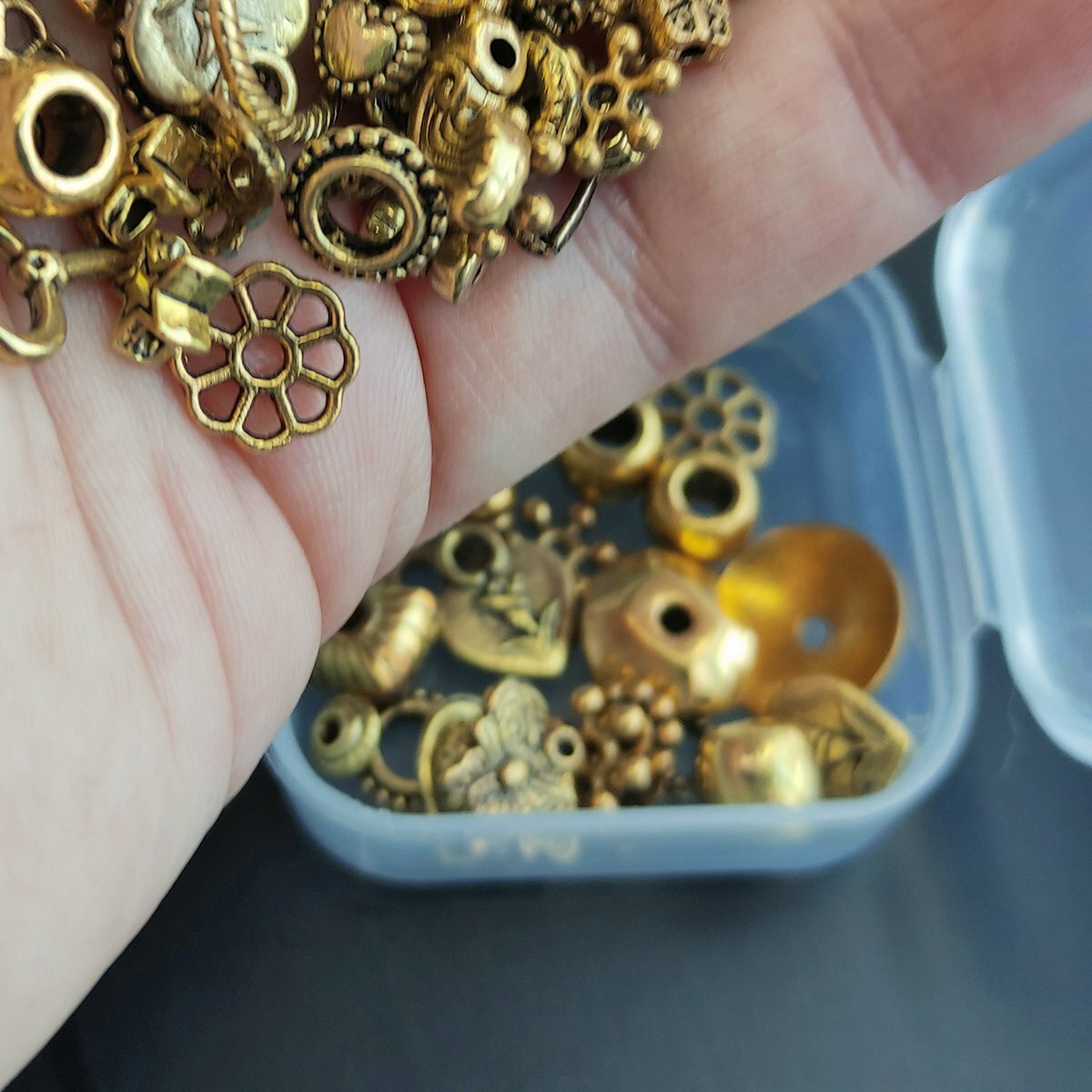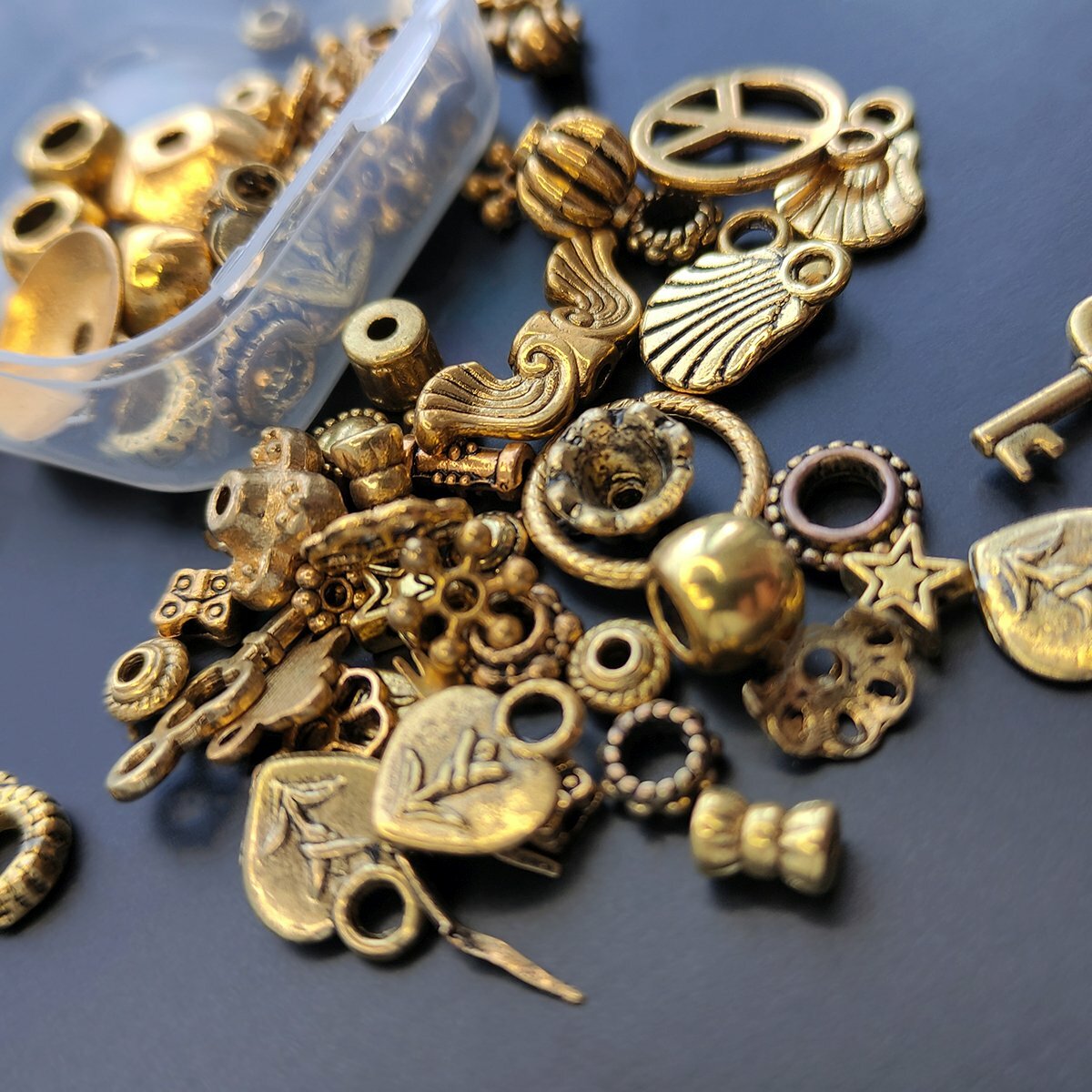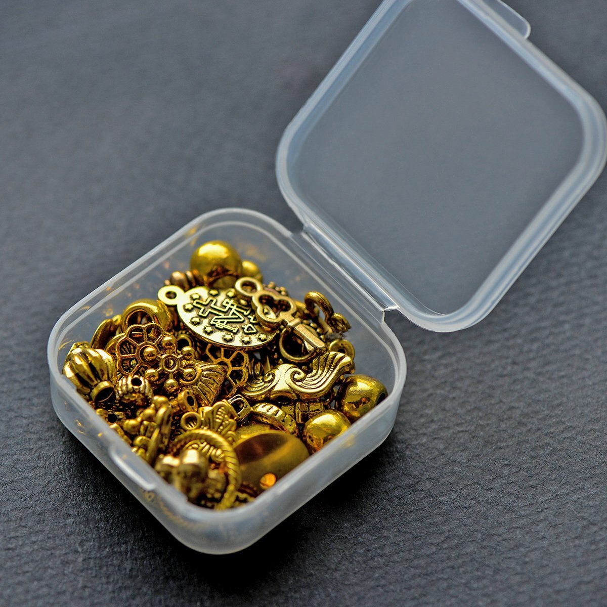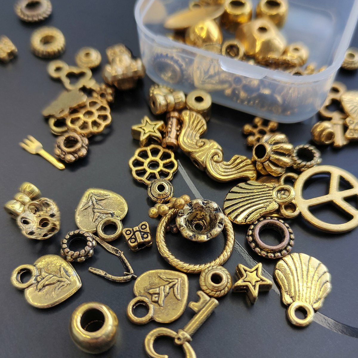 Набор Бусин, Шапочек и Подвесок в органайзере "Золотой микс" для создания сережек, браслетов / для детского творчества интересное: