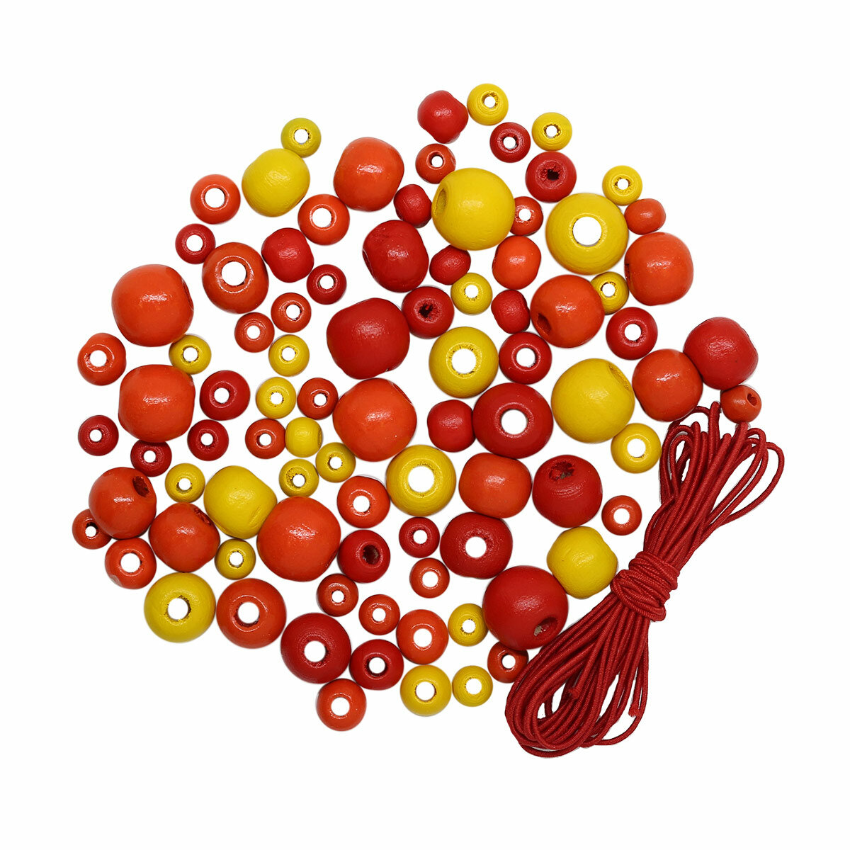 Купить Бусины для рукоделия деревянные со шнуром набор Красный микс, 6,8,10,12мм, 90 шт, Astra&Craft (160814)