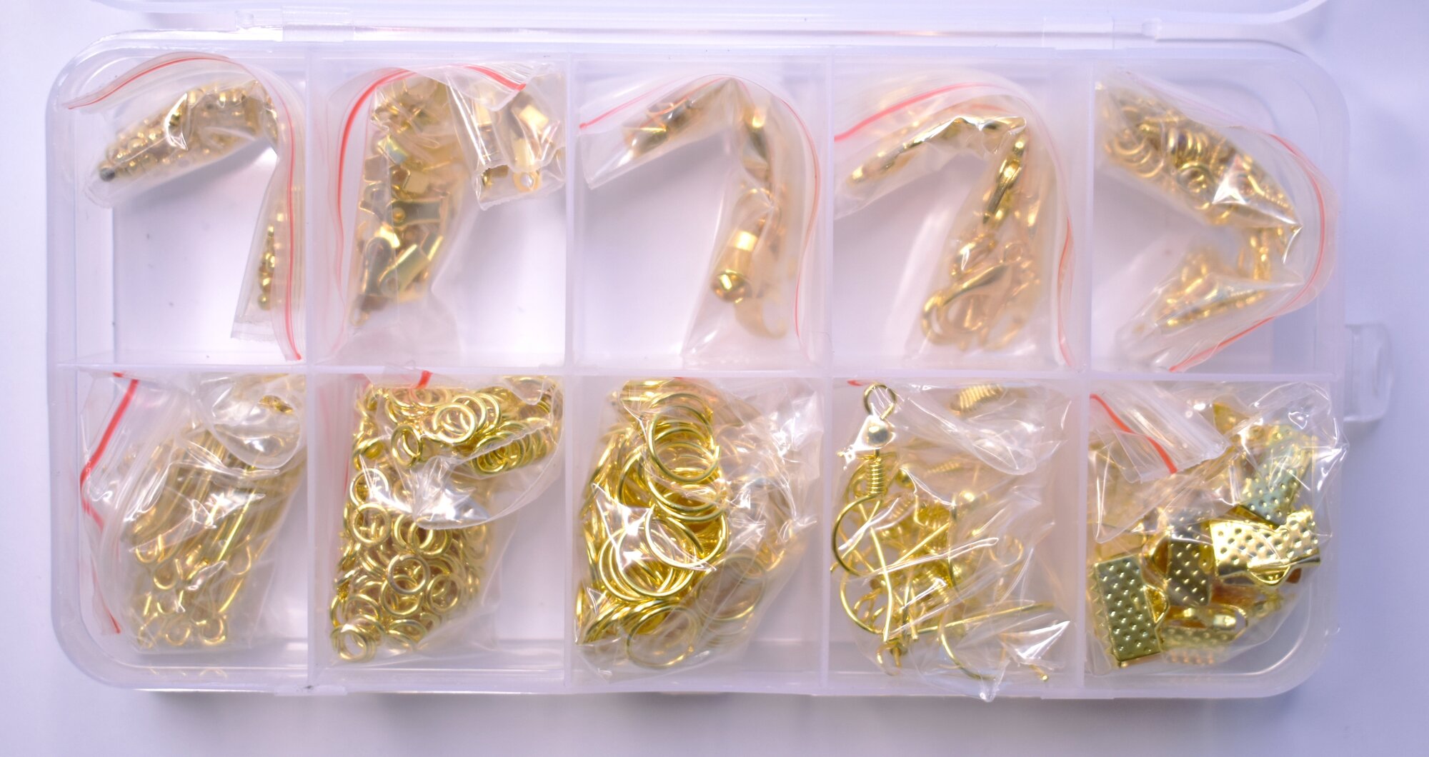 Купить Набор фурнитуры DKiSerg цвет золотистый до 870 элементов для создания украшений в органайзере 10 ячеек