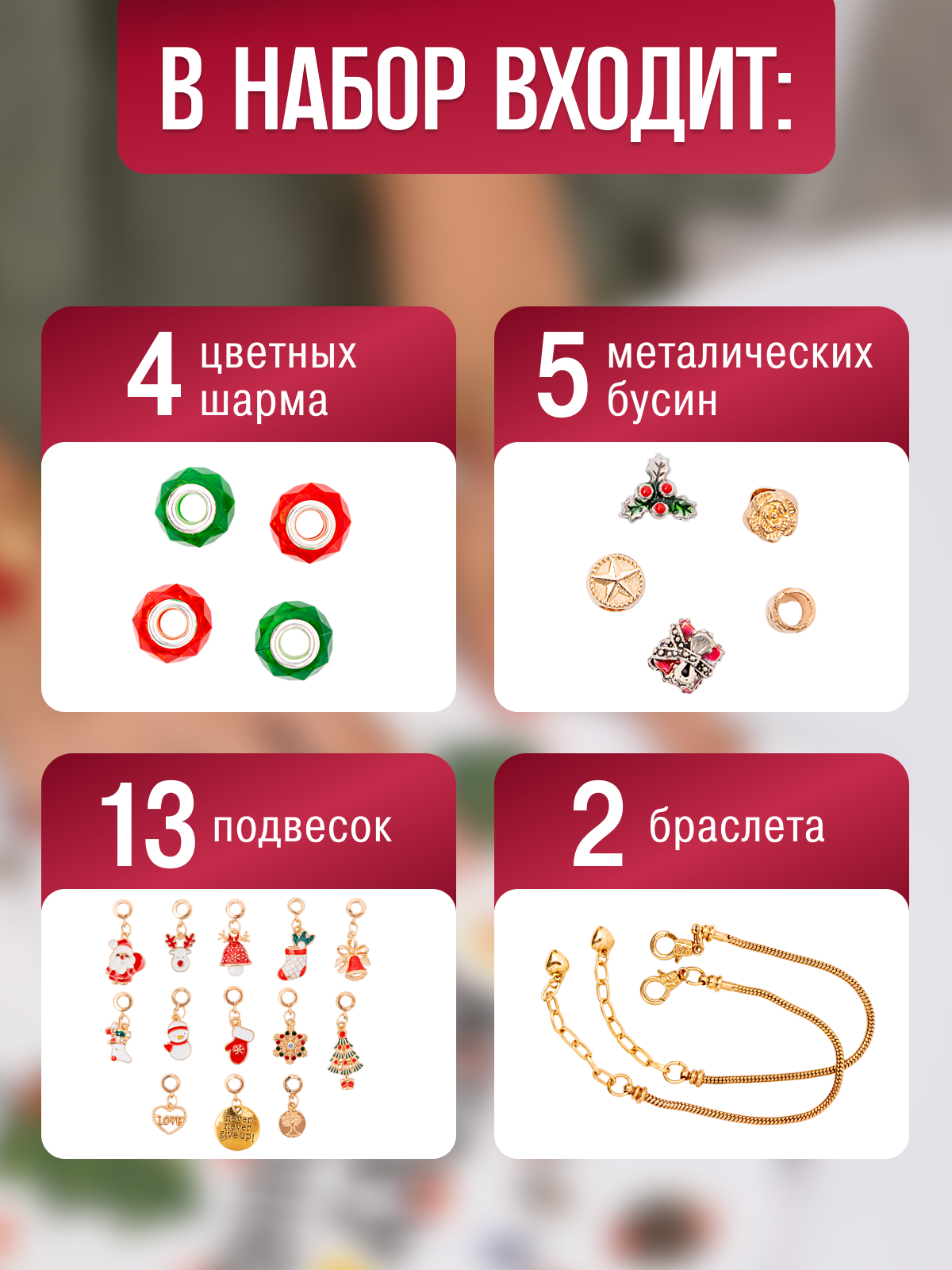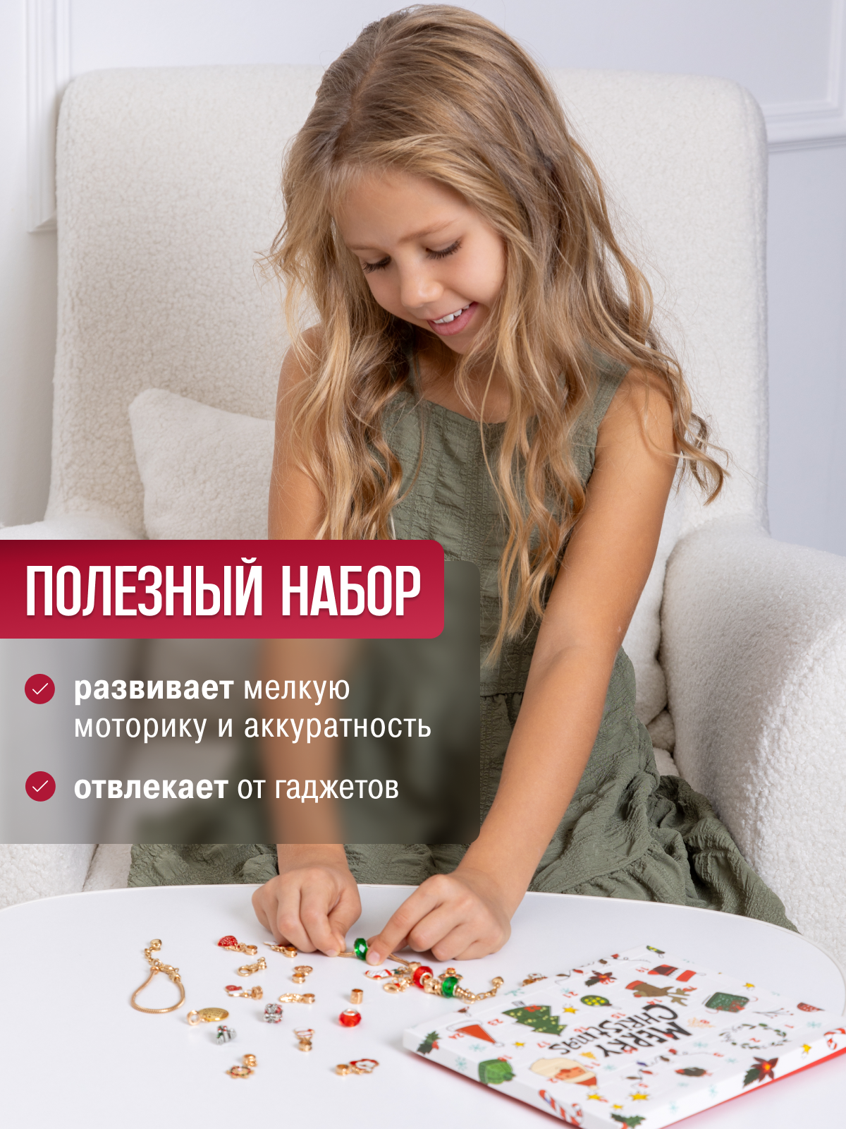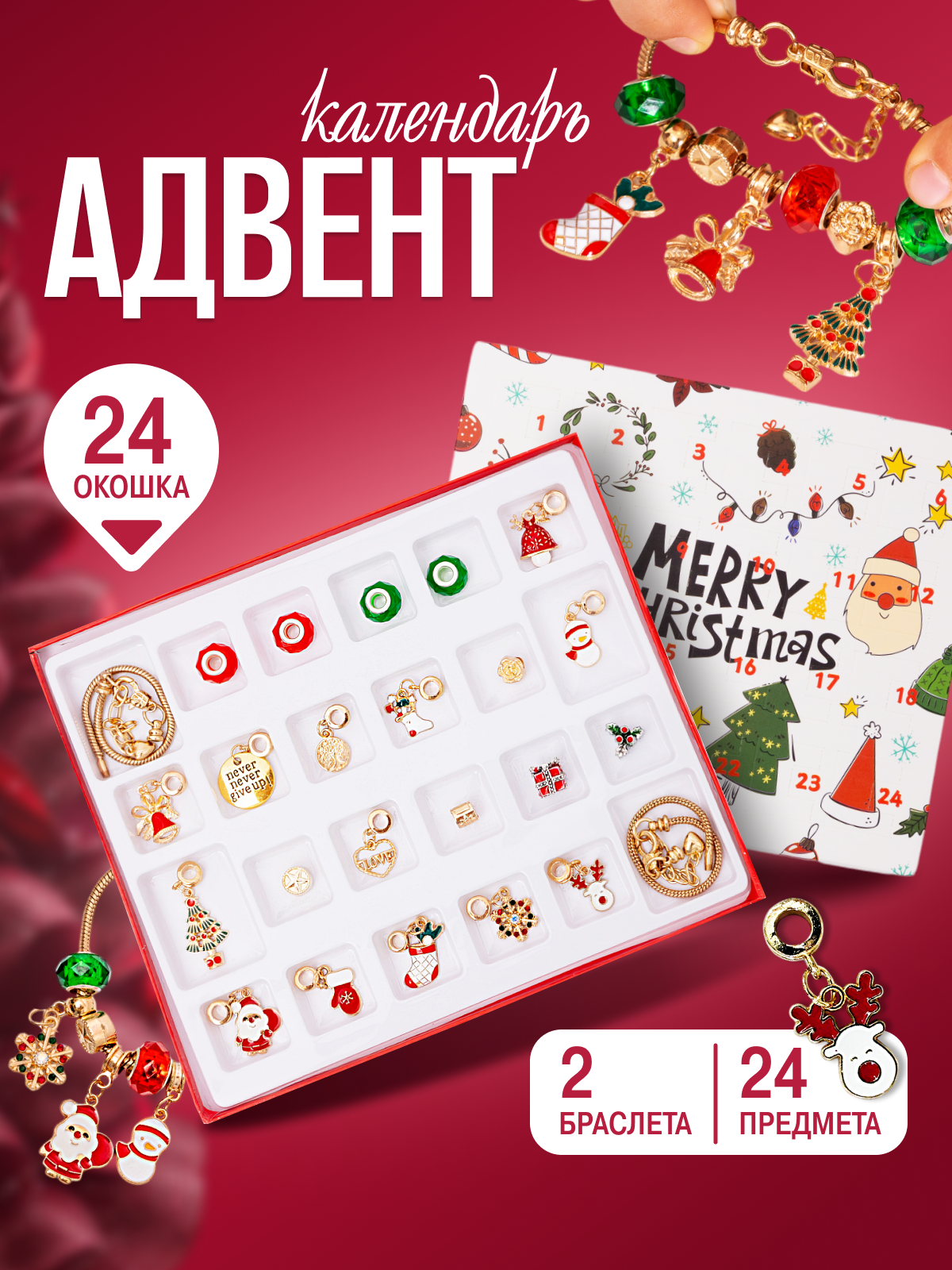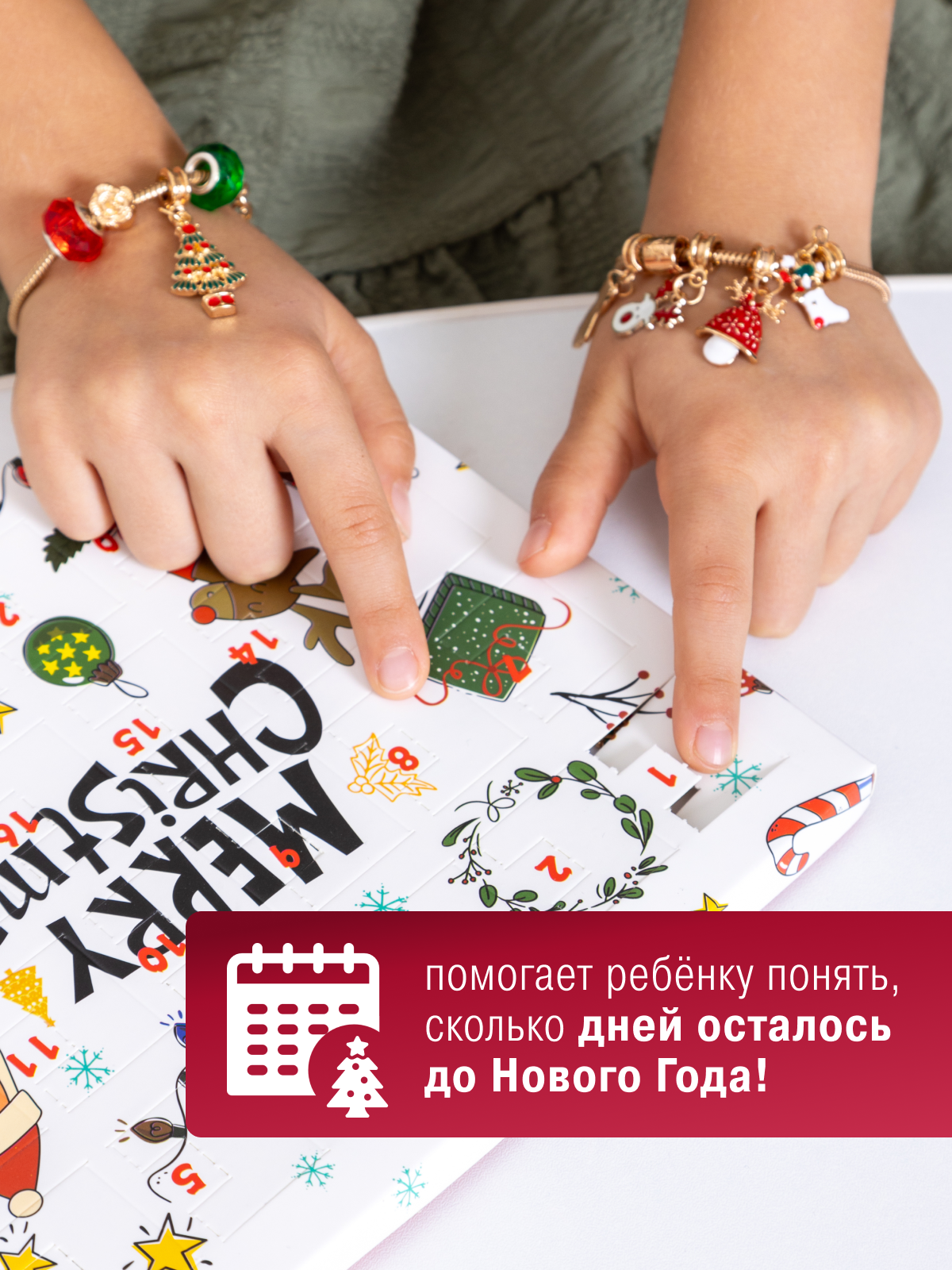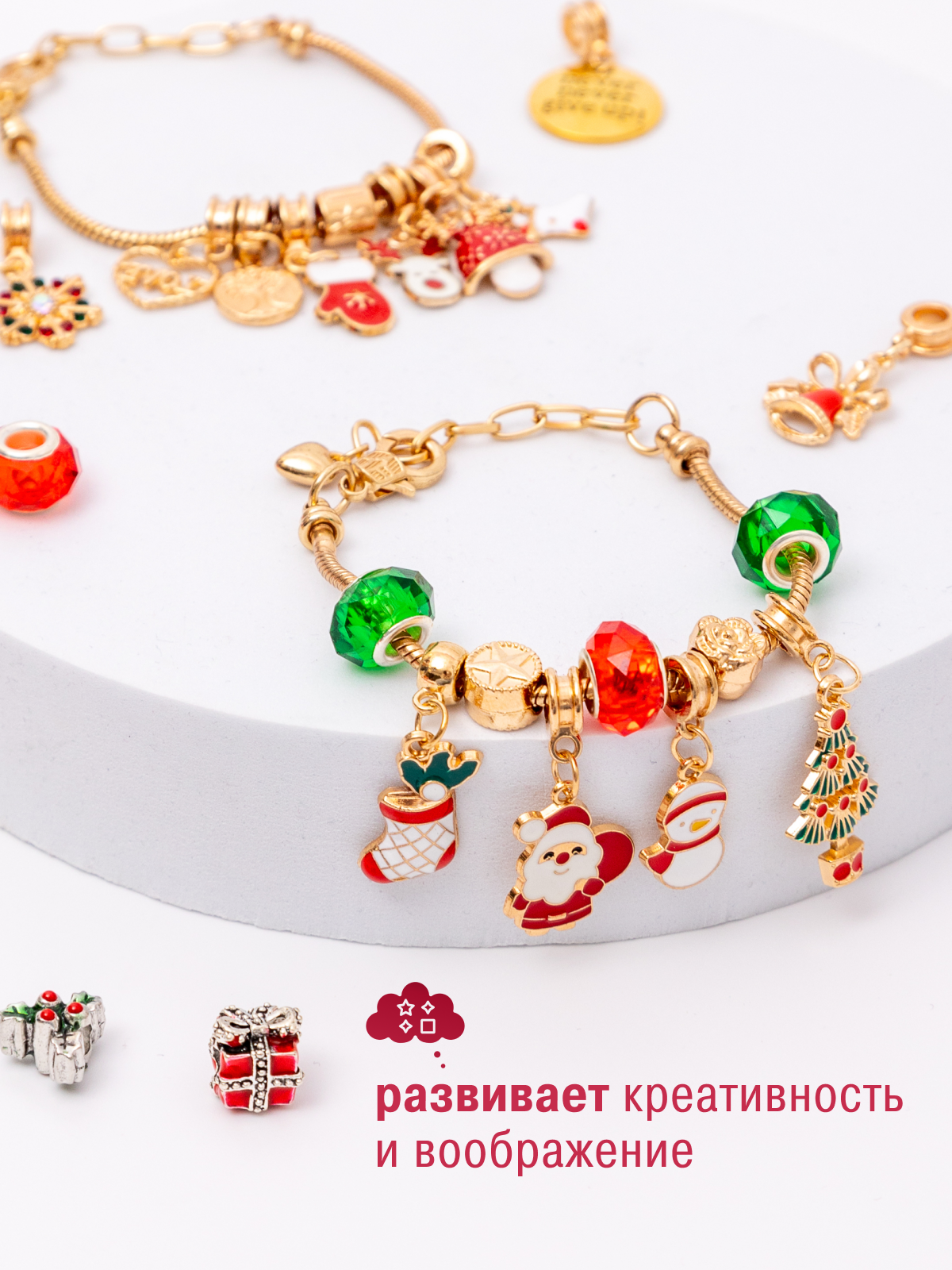 Купить Новогодний адвент календарь "Создай украшение" для девочек из 22 ярких подвесок и 2 основ для браслета