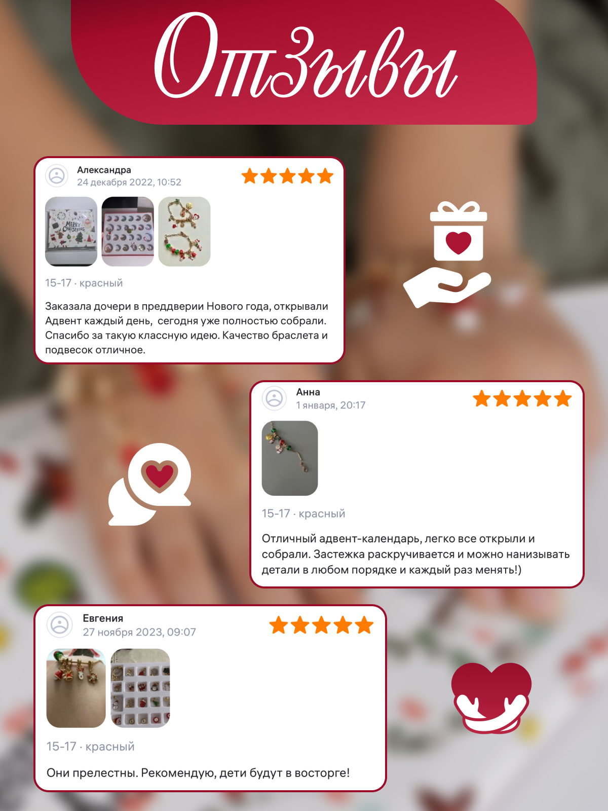 Ниже Вы можете прочитать отзывы на Новогодний адвент календарь "Создай украшение" для девочек из 22 ярких подвесок и 2 основ для браслета, ознакомится с подробными характеристиками, посмотреть интересные обзоры и фотографии на Новогодний адвент календарь "Создай украшение" для девочек из 22 ярких подвесок и 2 основ для браслета.