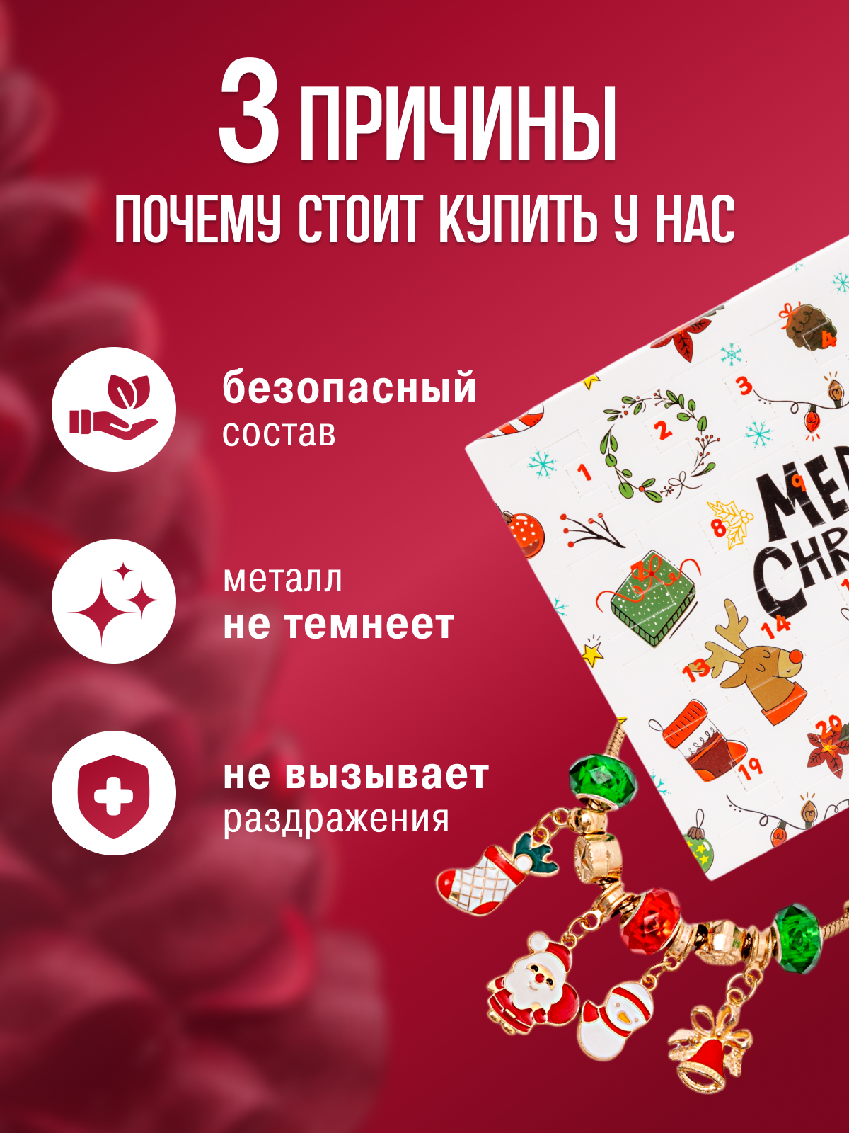 Новогодний адвент календарь "Создай украшение" для девочек из 22 ярких подвесок и 2 основ для браслета интересное: