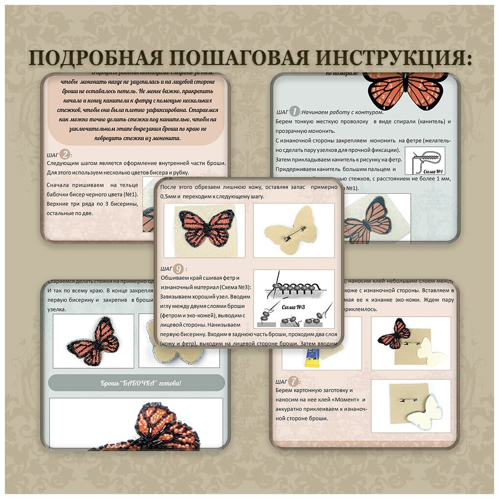 Набор для вышивания бисером, создания, изготовления, вышивки броши, украшения "Брошь из бисера Бабочка" Набор для творчества Stasya Studio интересное: