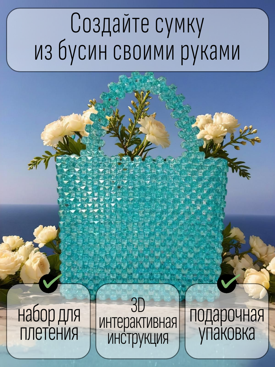 Набор для плетения сумки, с пошаговой 3D инструкцией, голубой цвет, подарочная упаковка интересное: