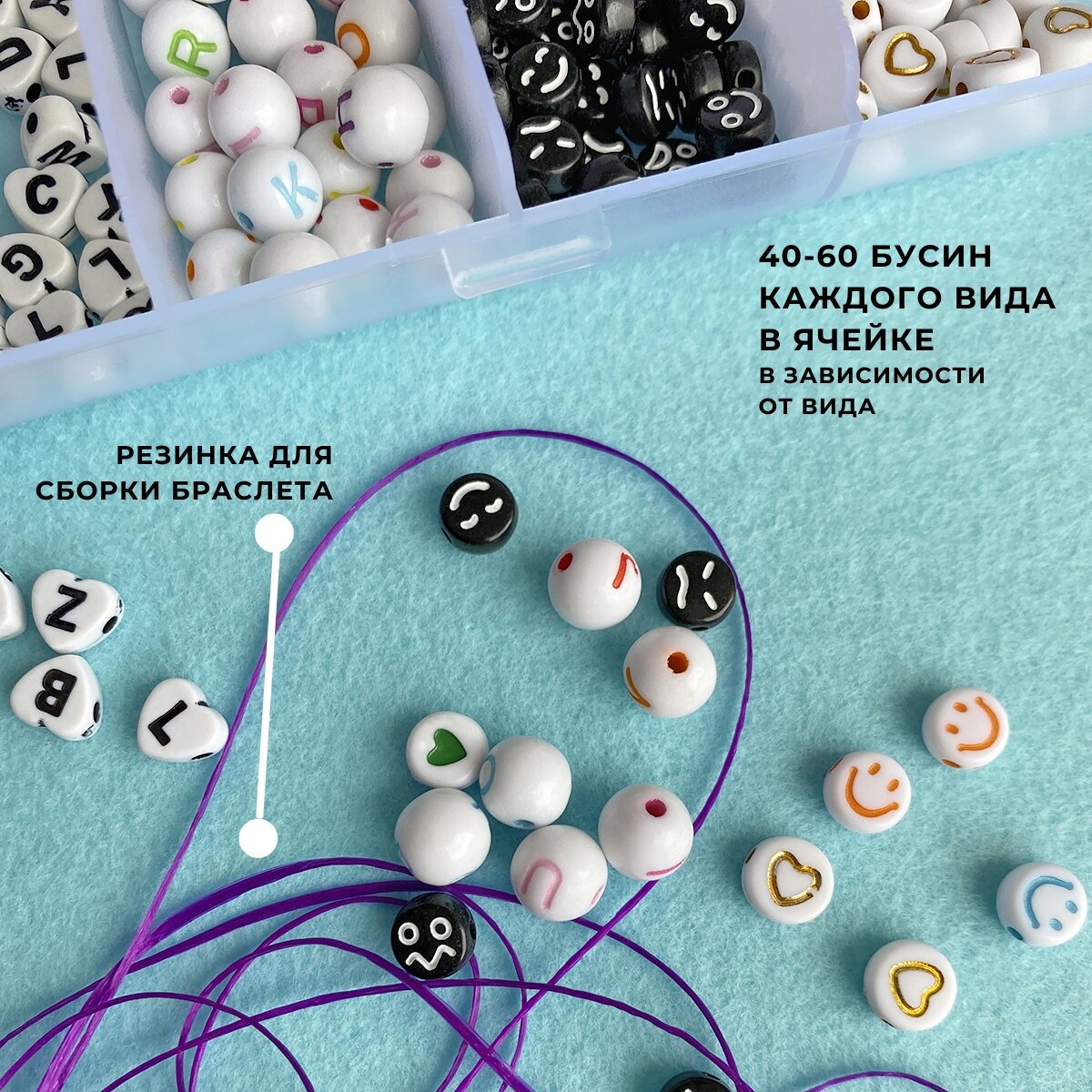 Набор бусин "Марина" для браслетов, бус / набор бусин для девочек / для детей интересное: