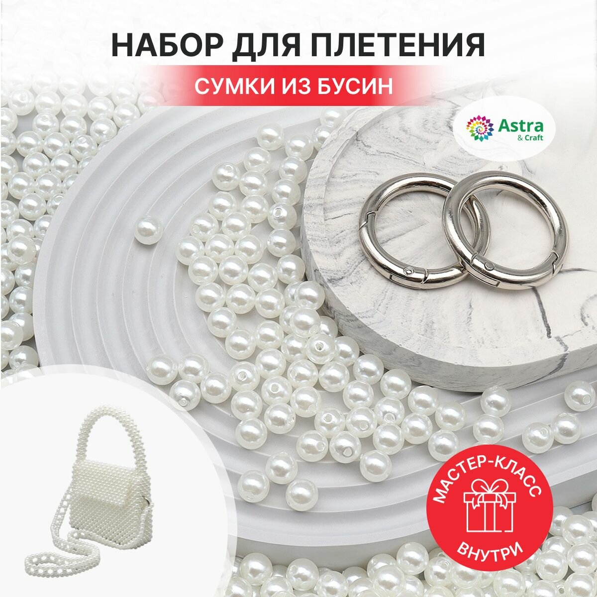 Купить Набор для плетения сумки из бусин, 8 мм, Astra&Craft (белый жемчуг)