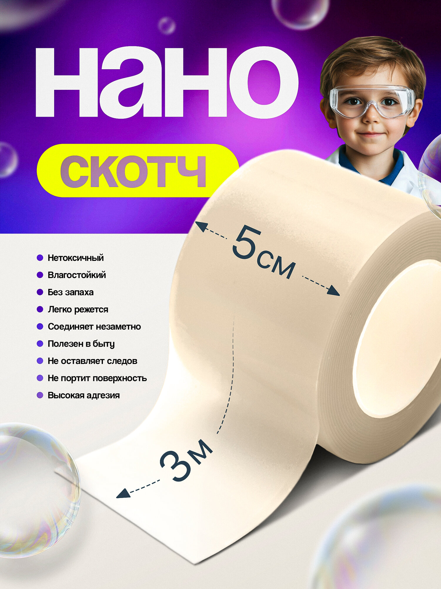 Набор для творчества Goods Retail, двусторонний нано-скотч, 3 метра, 63 элемента, сиреневый