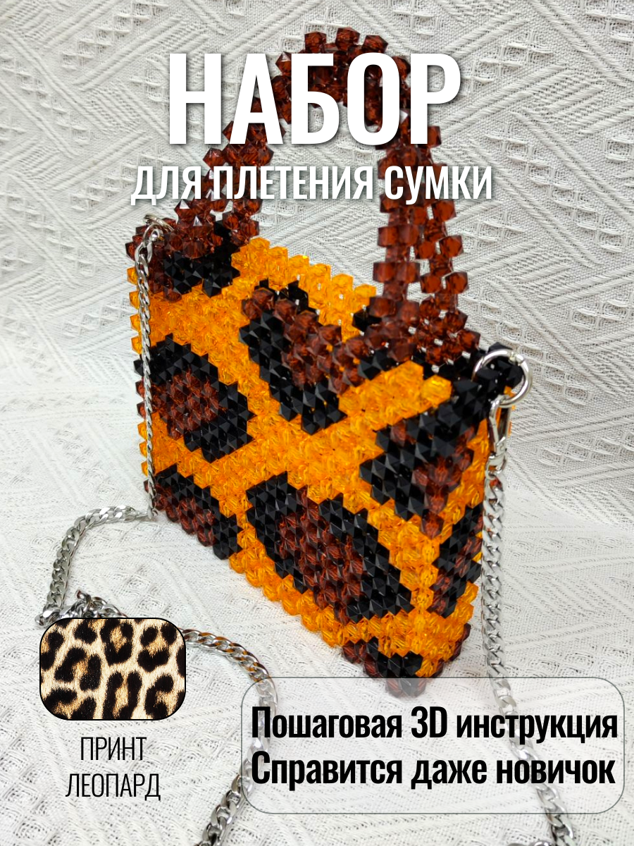 Купить Набор для плетения сумки, с пошаговой 3D инструкцией, подарочная упаковка, рисунок принт леопард