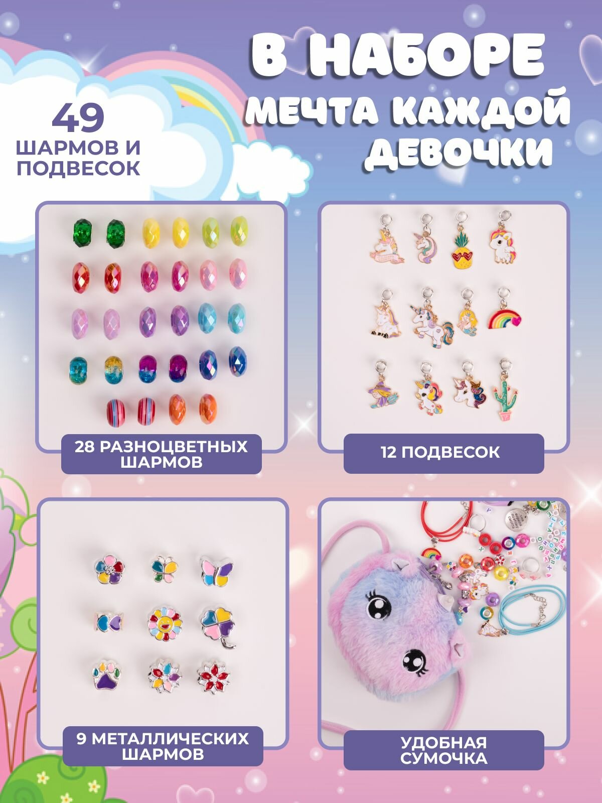 Набор для создания браслетов с шармами и часы в сумочке. Подарок для девочки Litlantica Литлантика интересное: