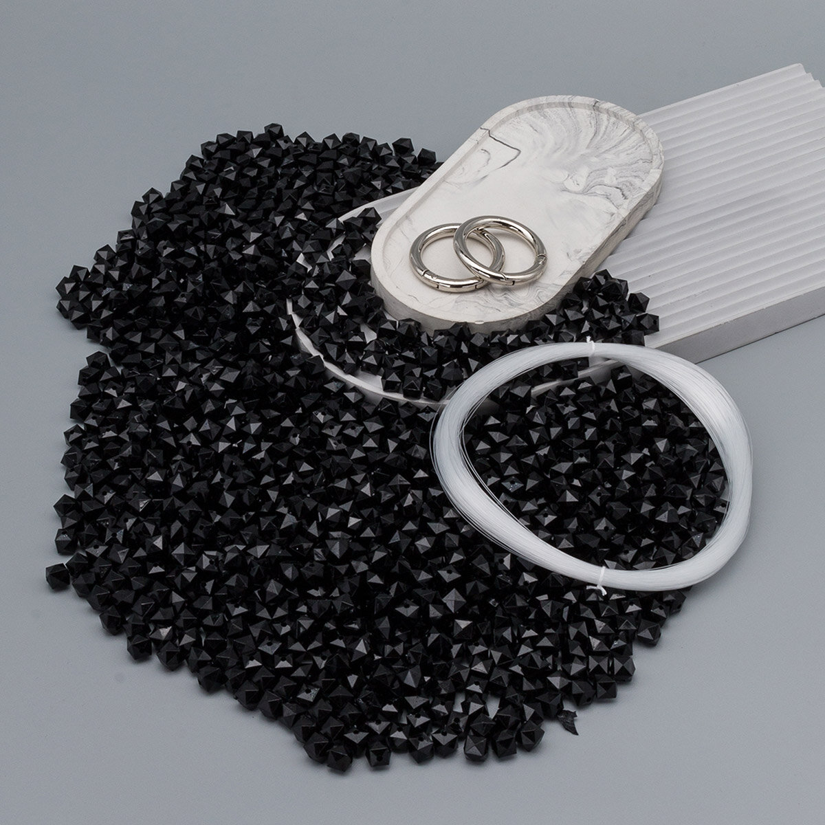 Набор для плетения сумки из бусин, акриловые, граненый куб, 10 мм, Astra&Craft (671 серый)
