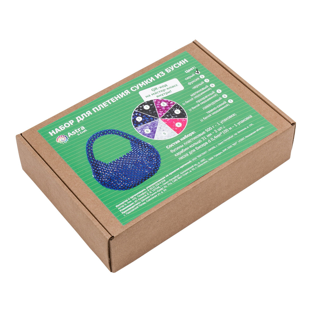 Набор для плетения сумки из бусин, акриловые, граненый куб, 10 мм, Astra&Craft (643 лавандовый)