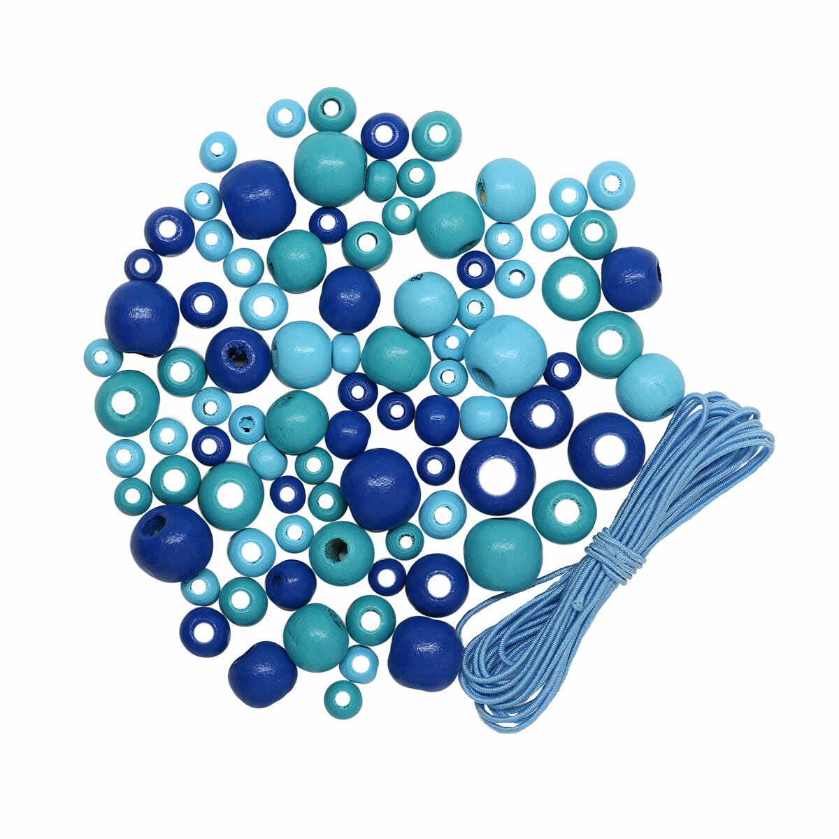Купить Бусины для рукоделия деревянные со шнуром набор Голубой микс, 6, 8, 10, 12 мм, 90 шт, Astra&Craft (160815)