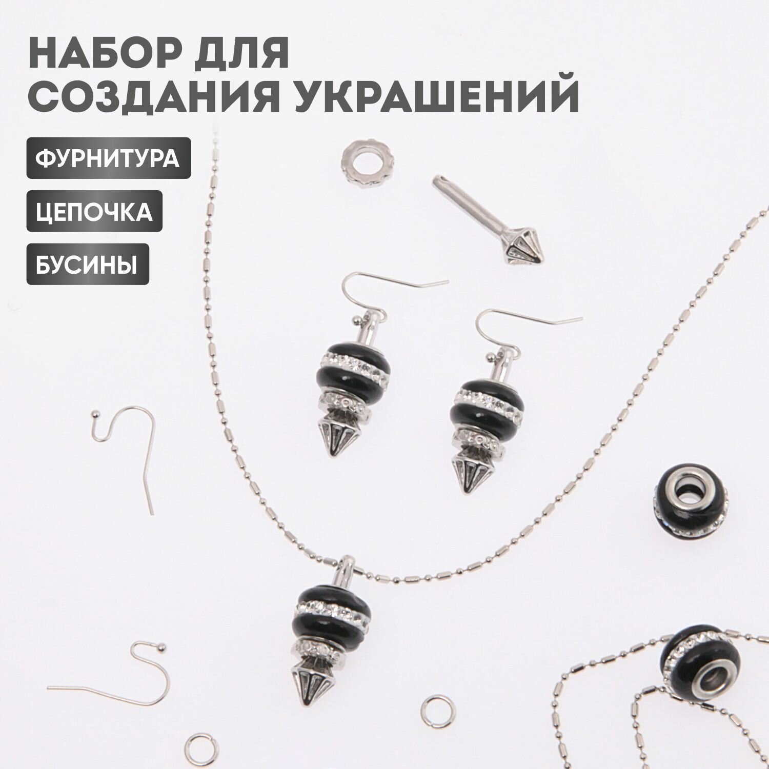 Купить Набор для создания украшений (подвеска и сережки), Astra&Craft (серебристый, черный)