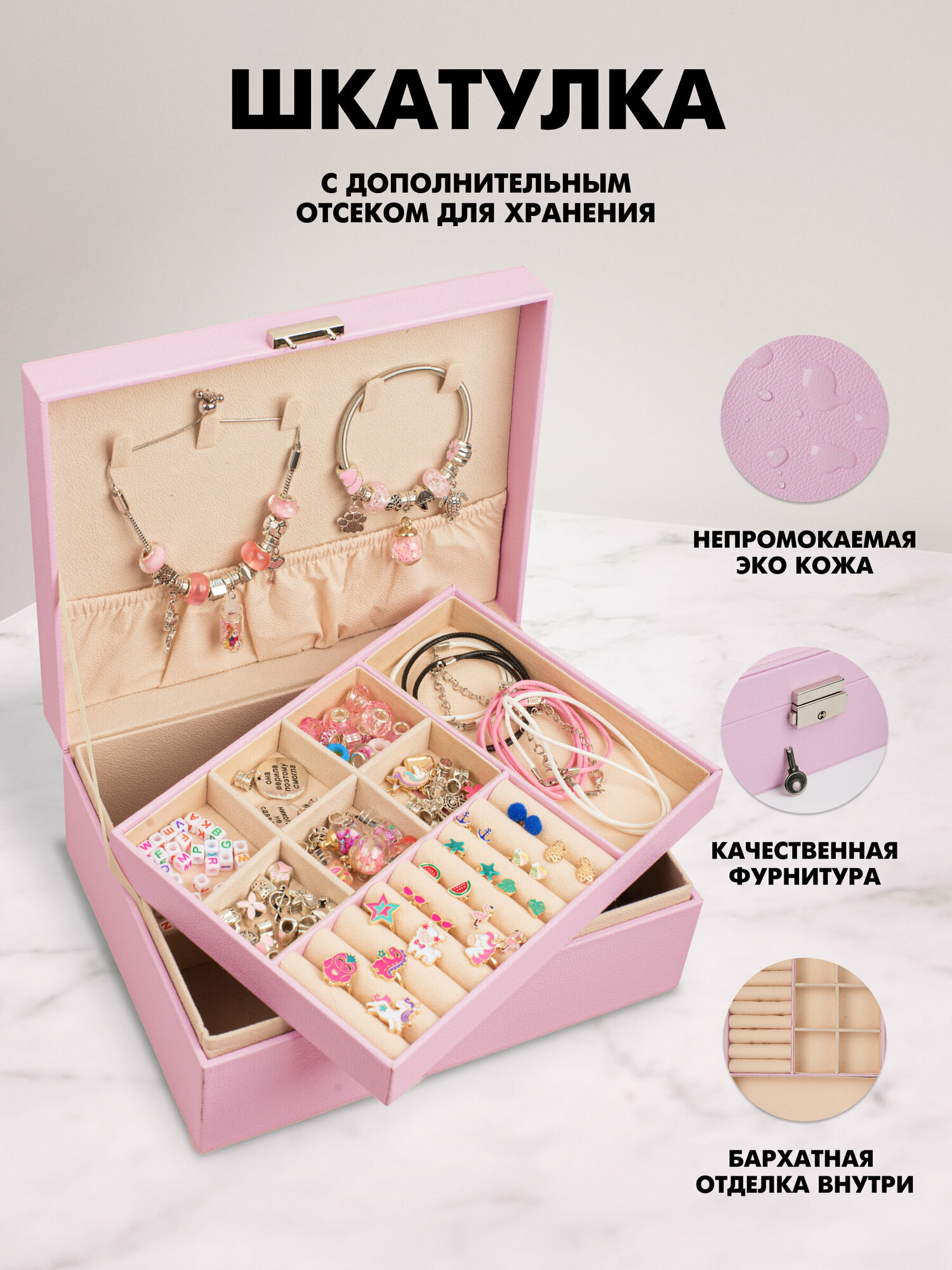 Купить Набор для создания браслетов и ожерелий в шкатулке Litlantica, цвет розовый, 309 предметов
