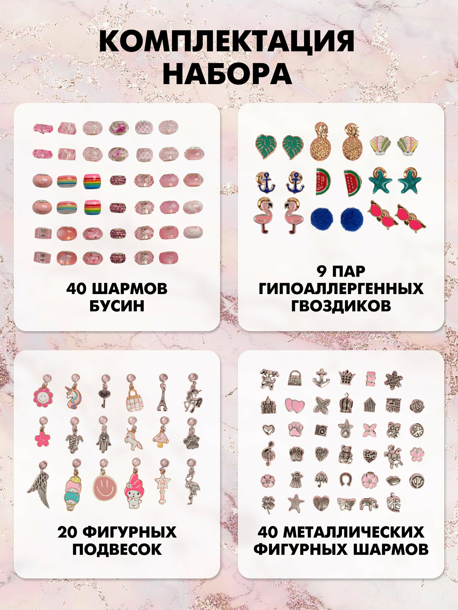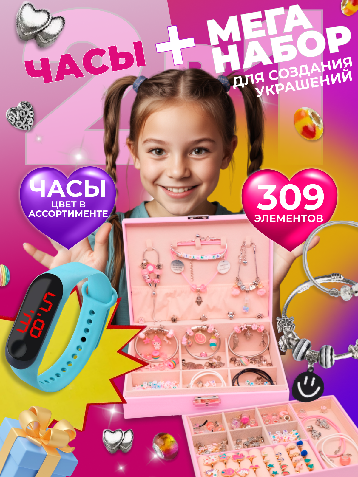 Подарочный набор для создания украшений с часами Litlantica, цвет розовый, 233 предмета