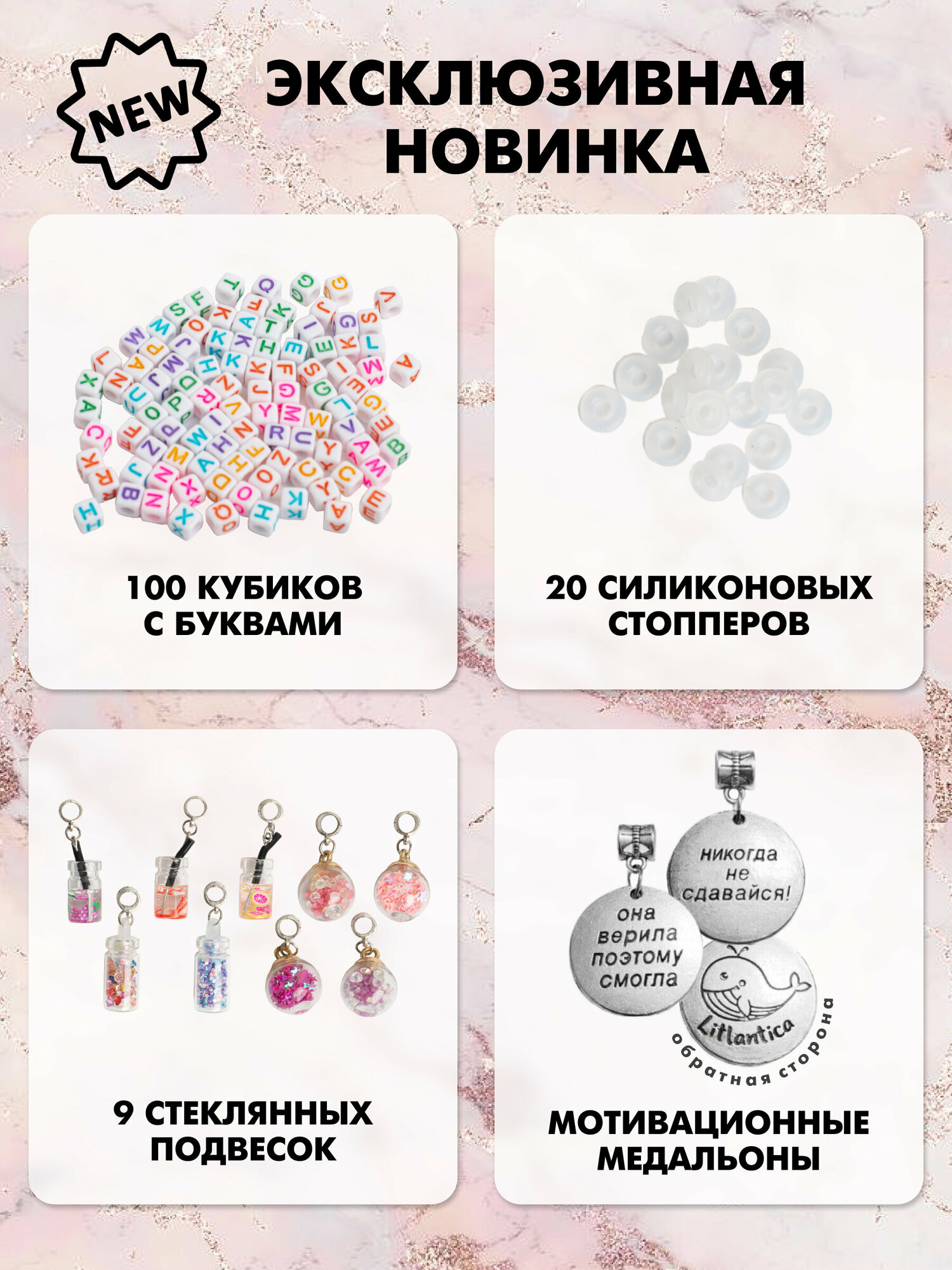 Подарочный набор Litlantica "Радужный", для создания украшений, 233 элемента