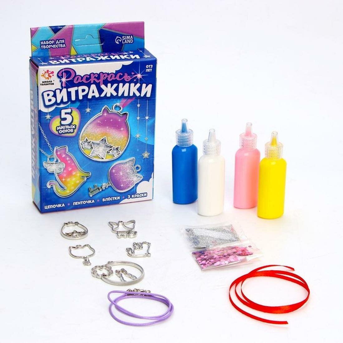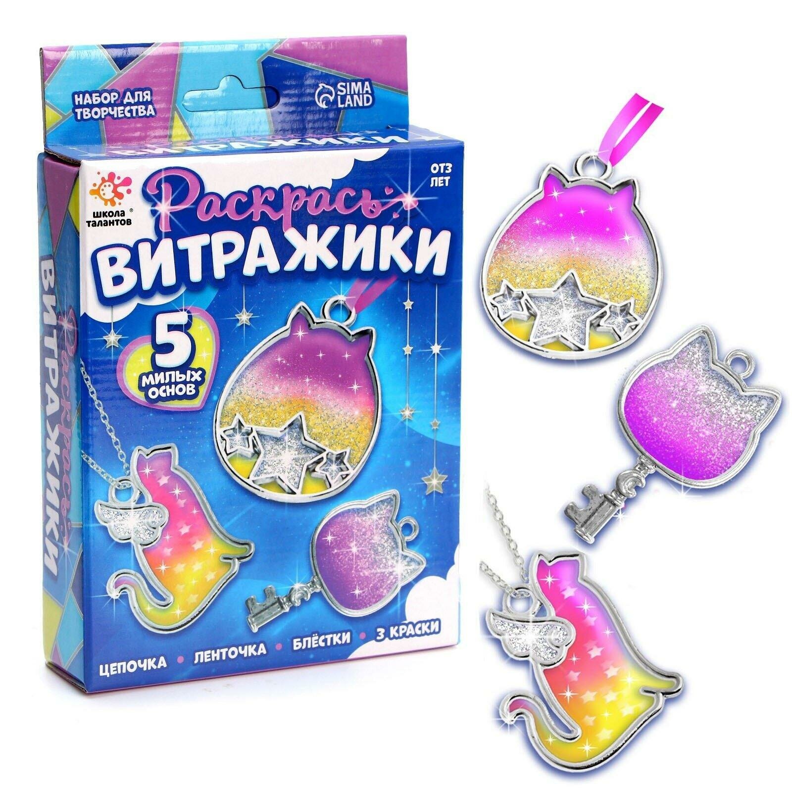 Купить Школа талантов Набор для творчества Раскрась витражики, кошечки 5 форм