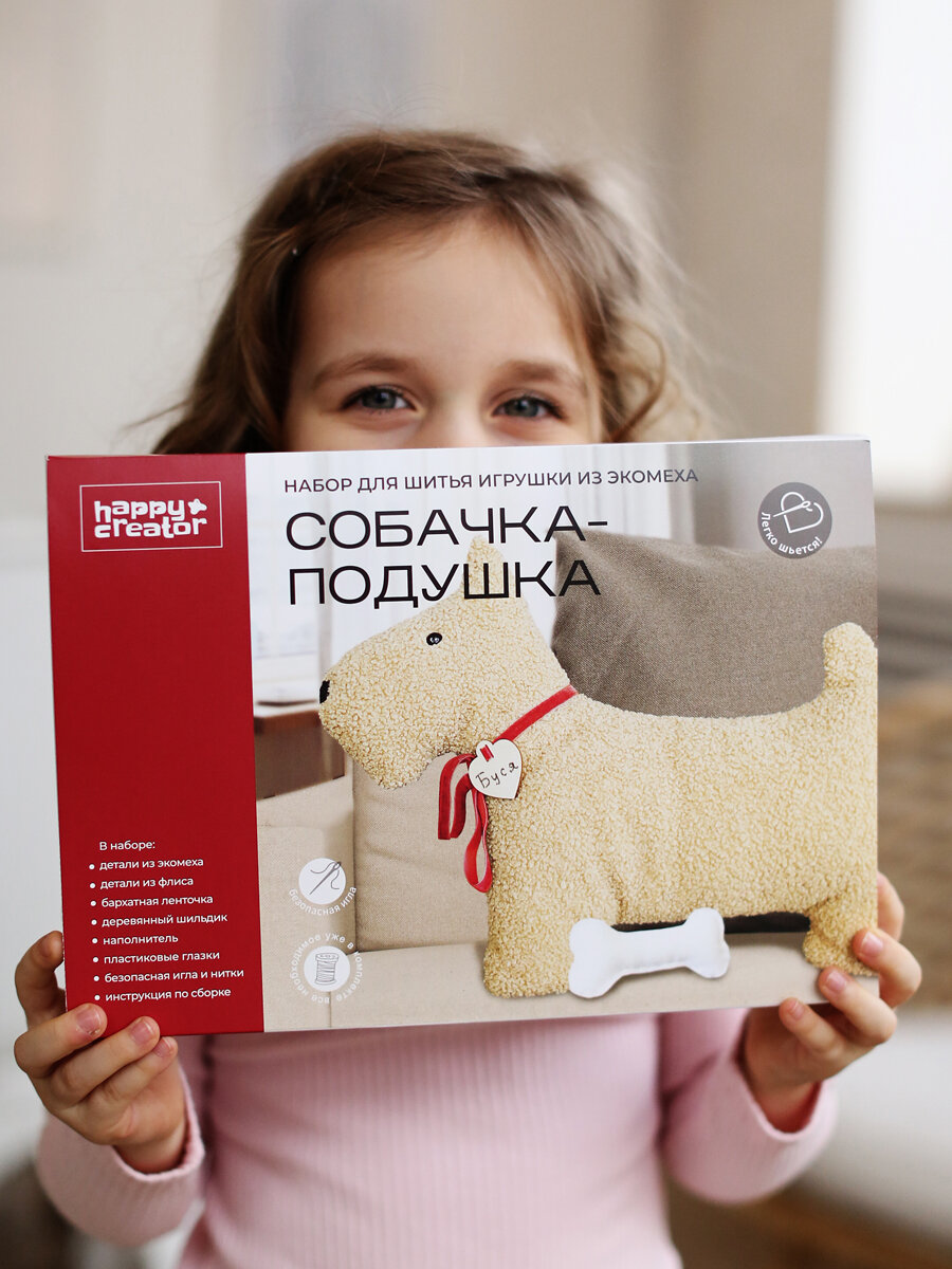 Набор для шитья из экомеха "Собачка с косточкой" подушка своими руками, стильный подарок интересное: