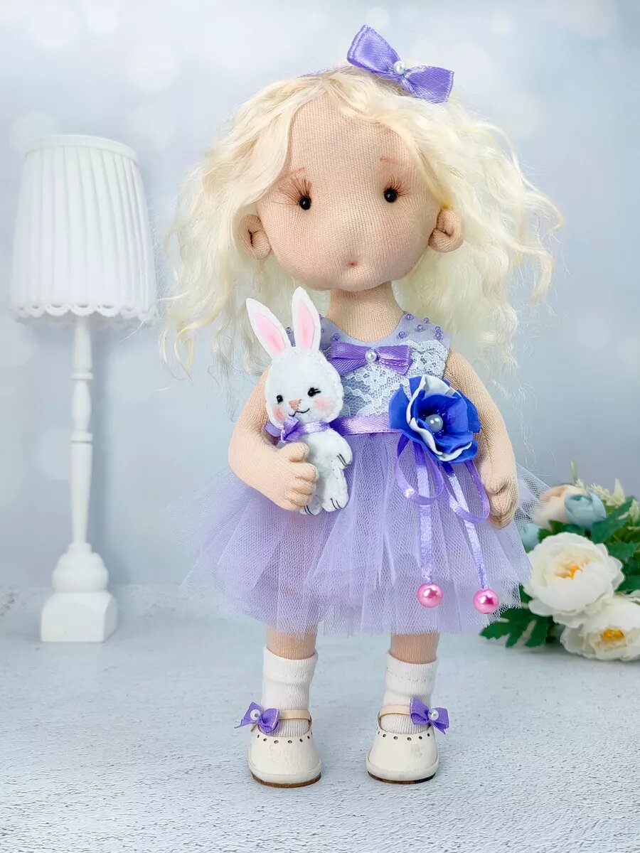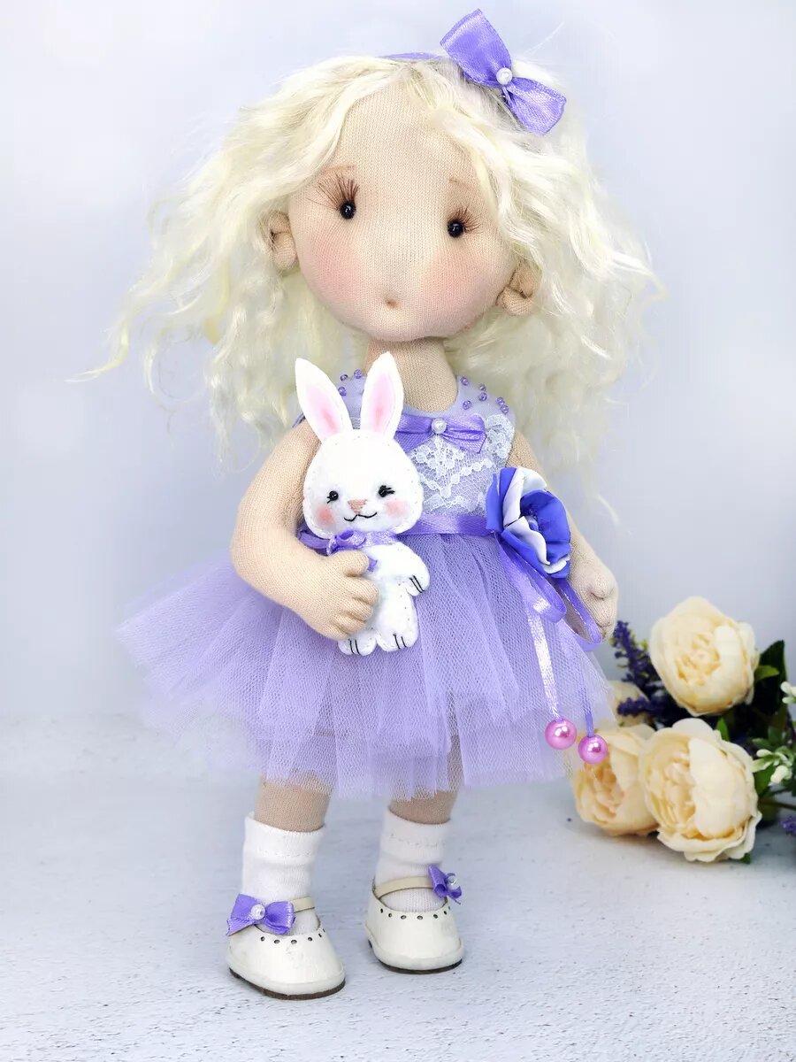 Купить Набор для шитья КУКЛЫ-ДОМИКИ, текстильная кукла щекастик "Бусинка" Фиолетовый, интерьерная кукла, 25см