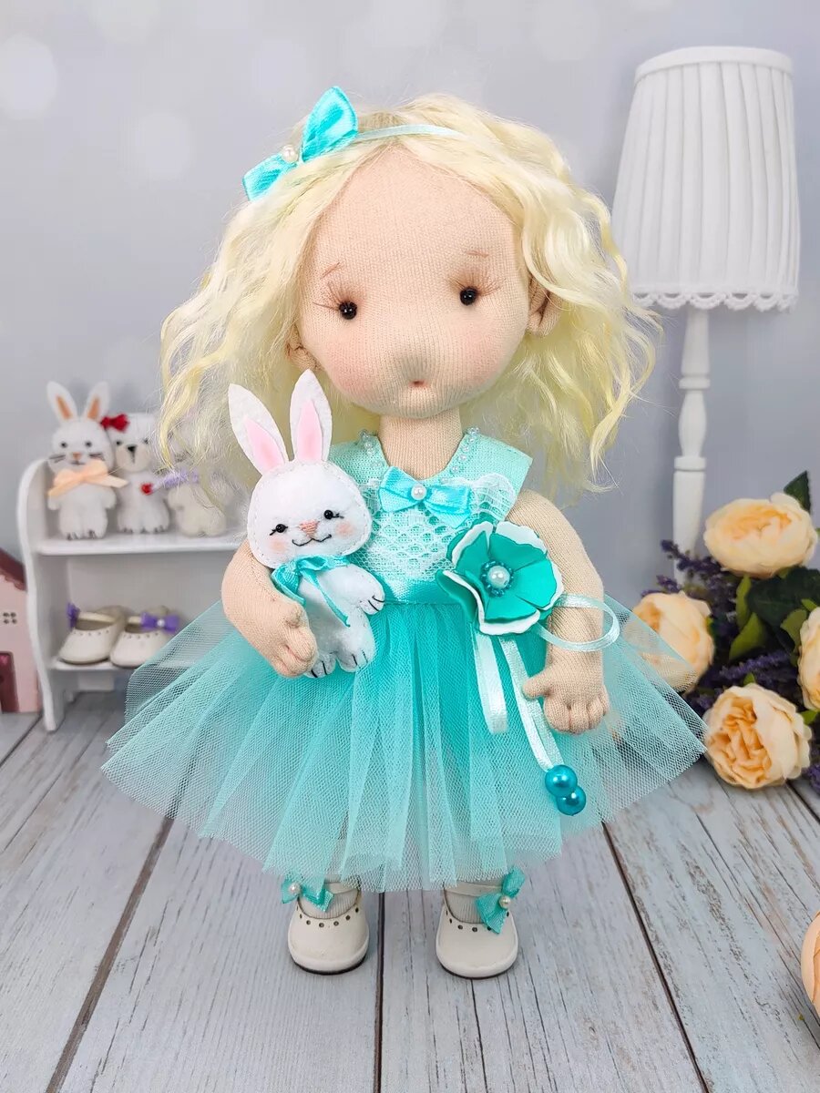 Купить Набор для шитья КУКЛЫ-ДОМИКИ, куклы-щекастика "Бусинка" Бирюзовый Тиффани, 25см,14+