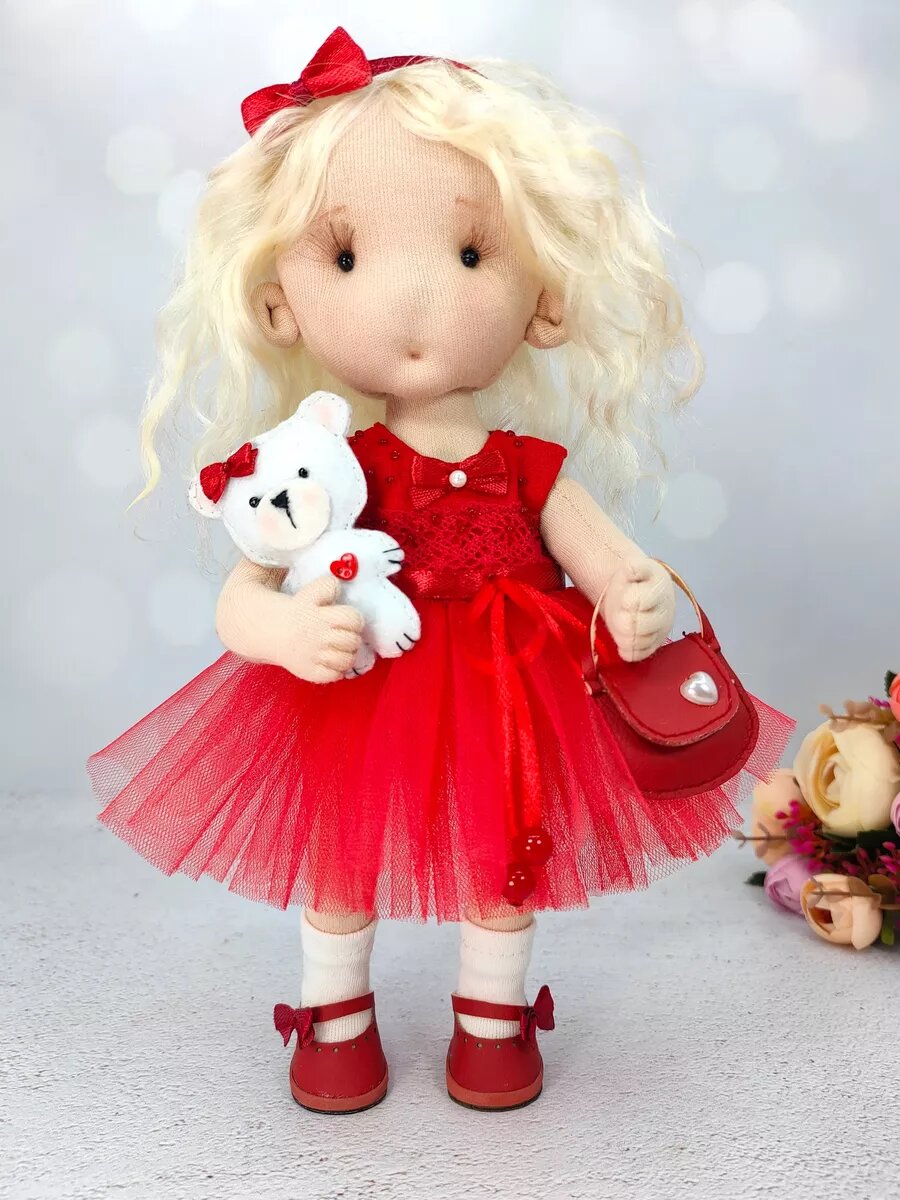 Купить Набор для шитья КУКЛЫ-ДОМИКИ текстильная кукла щекастик "Бусинка" Красный, 25см