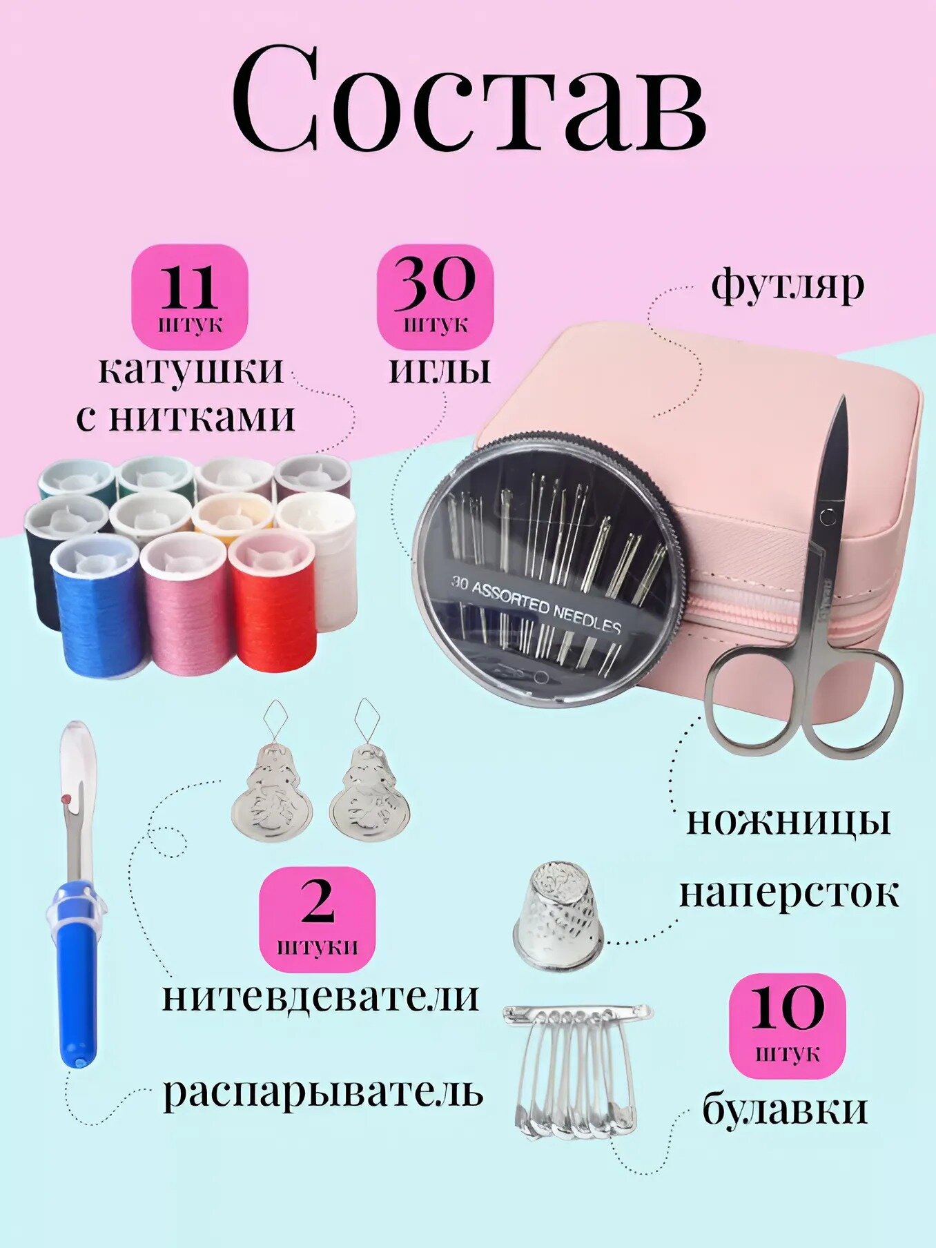 Набор для шитья швейный, Швейный набор дорожный, цвет розовый интересное: