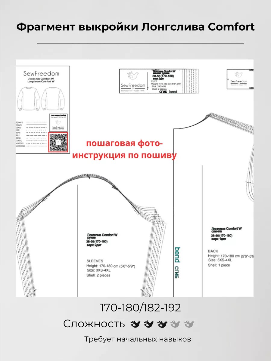 Выкройка Лонгслив/ Свитшот рост 182-192 см интересное: