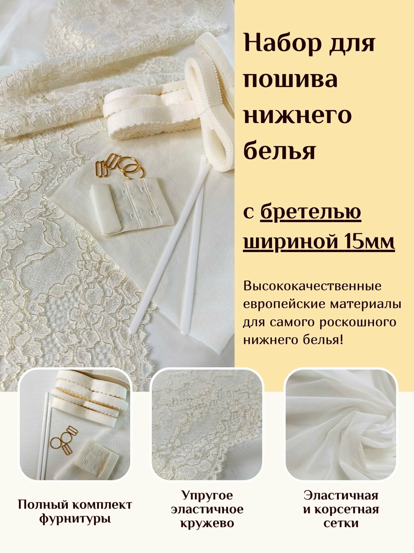 Набор для пошива нижнего белья с бретелью 15мм, молочный с золотом интересное: