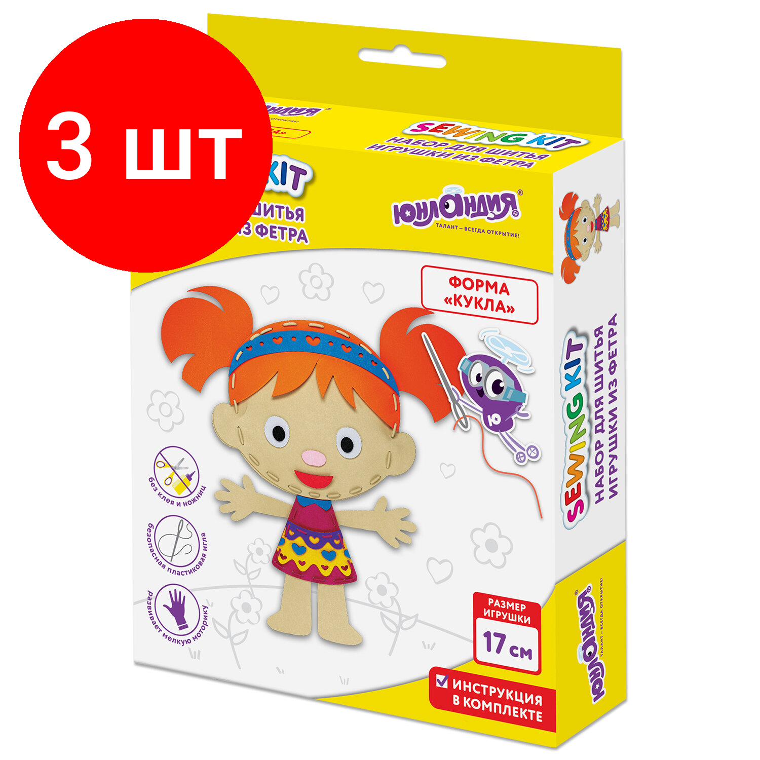 Купить Комплект 3 шт, Набор для шитья игрушки из фетра "Куколка", юнландия, 664733