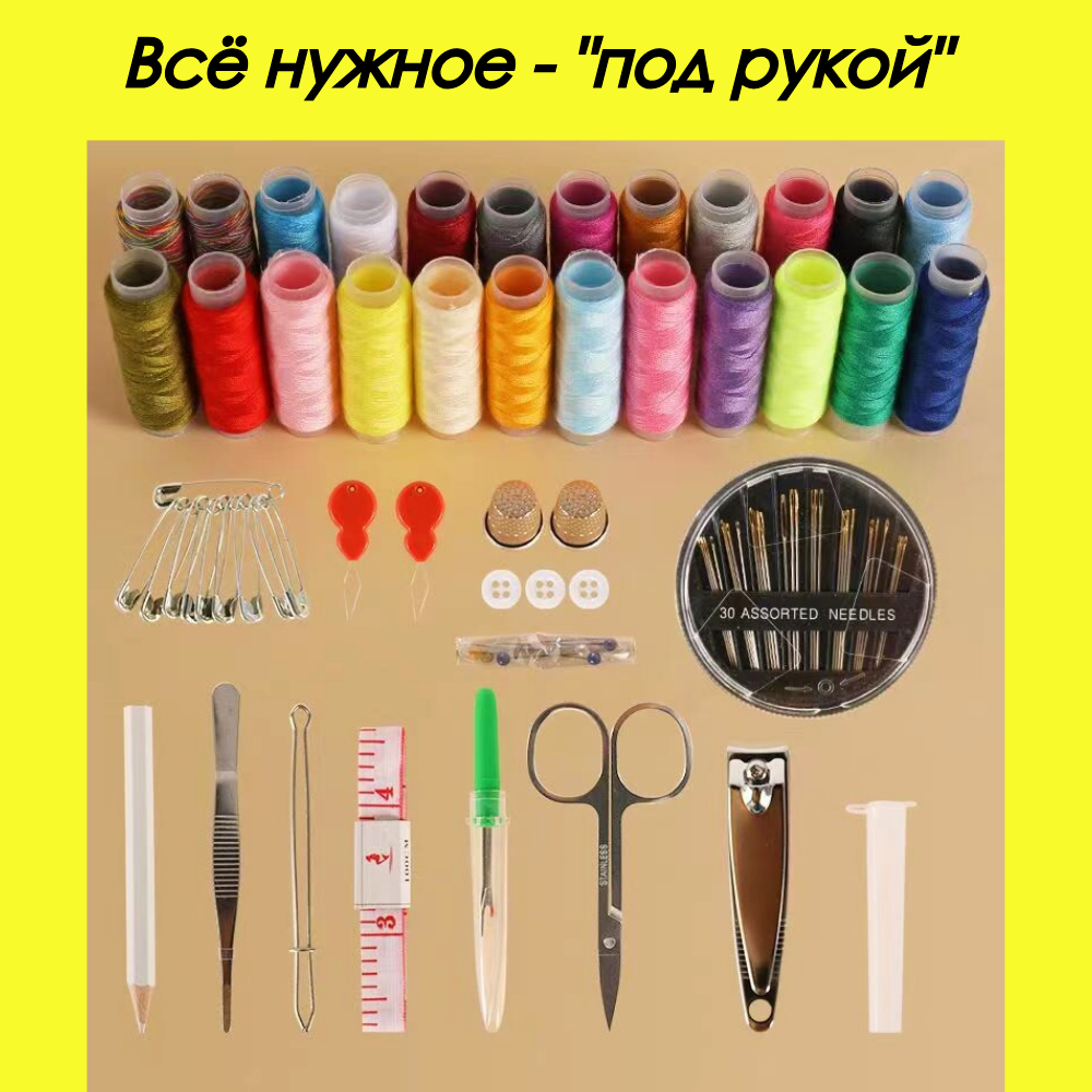 Швейный набор для дома / набор для шитья дорожный 96 предметов черный интересное: