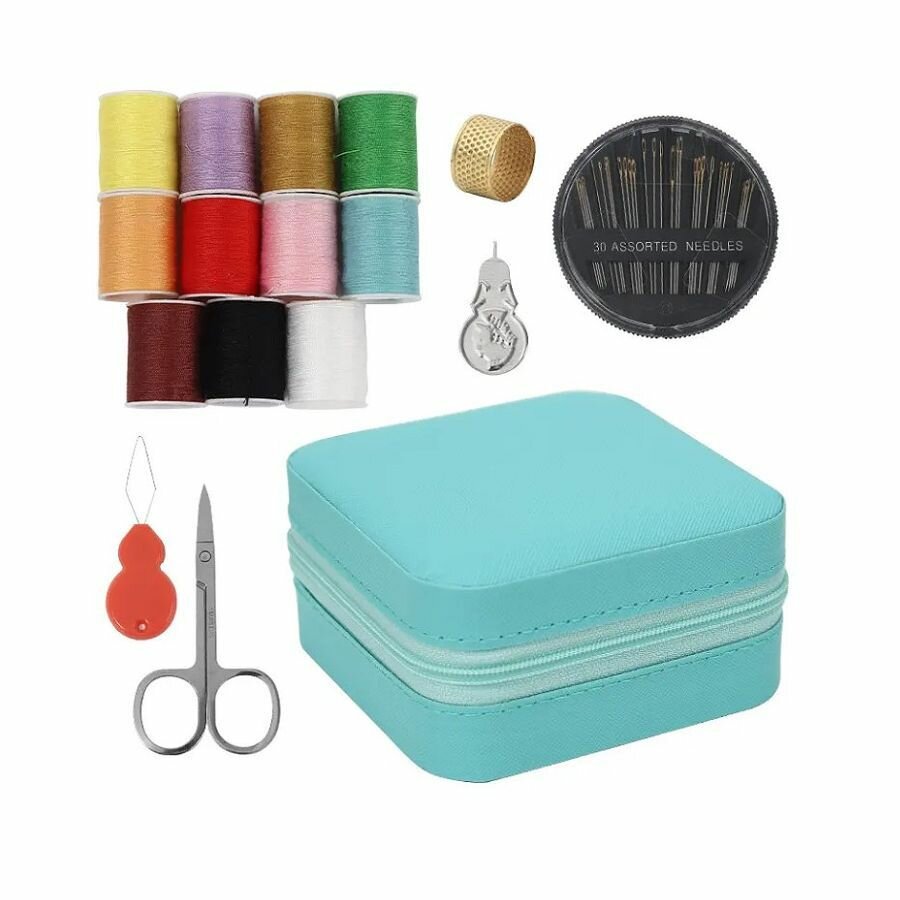 Набор дорожный для шитья / Многофункциональный швейный комплект в кейсе зеленый