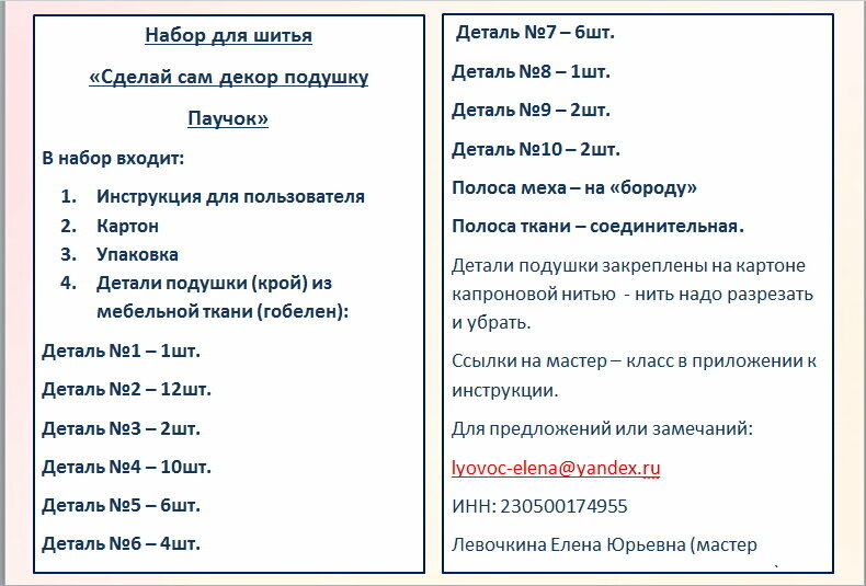 Ниже Вы можете прочитать отзывы на Набор для рукоделия "Подушечка - игрушечка Паучок 5", гобелен и мех., ознакомится с подробными характеристиками, посмотреть интересные обзоры и фотографии на Набор для рукоделия "Подушечка - игрушечка Паучок 5", гобелен и мех..