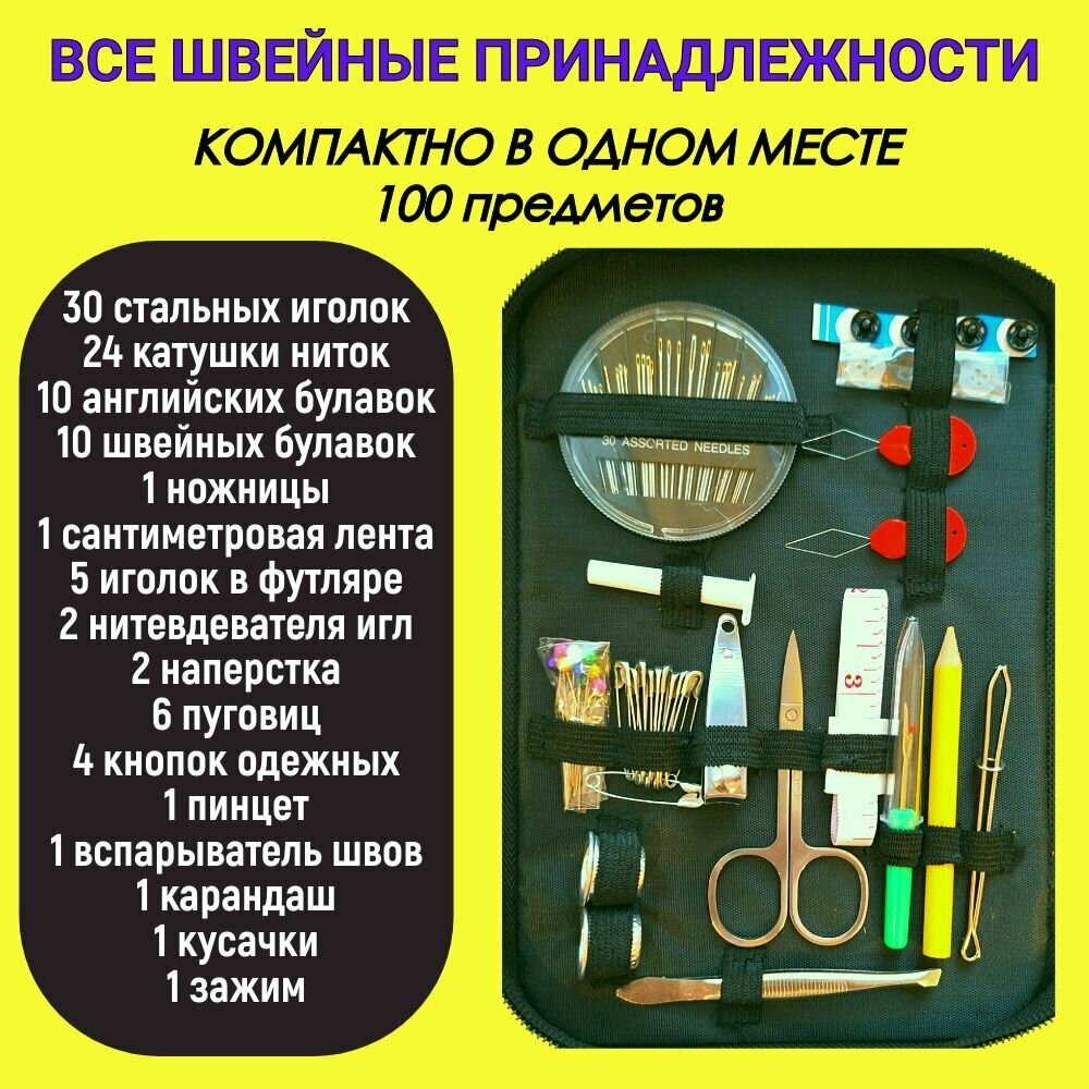 Швейный набор для дома и рукоделия, творчества, набор для шитья в школу,100 предметов интересное:
