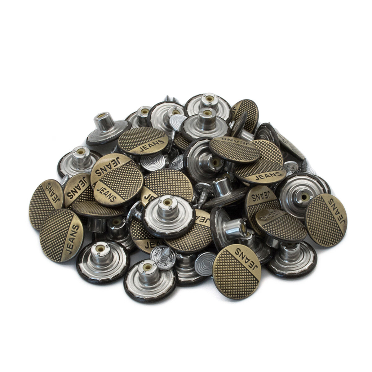 Купить Пуговицы для джинсов 18 мм, Айрис 'JEANS', фиксированная ножка, металл (антик), 50 шт