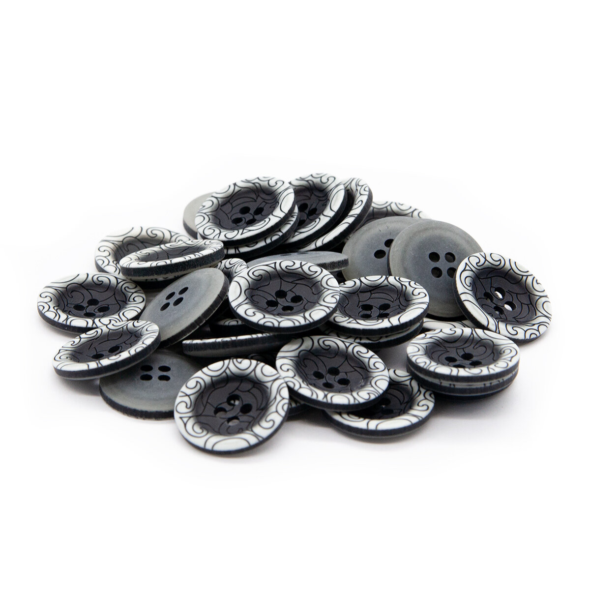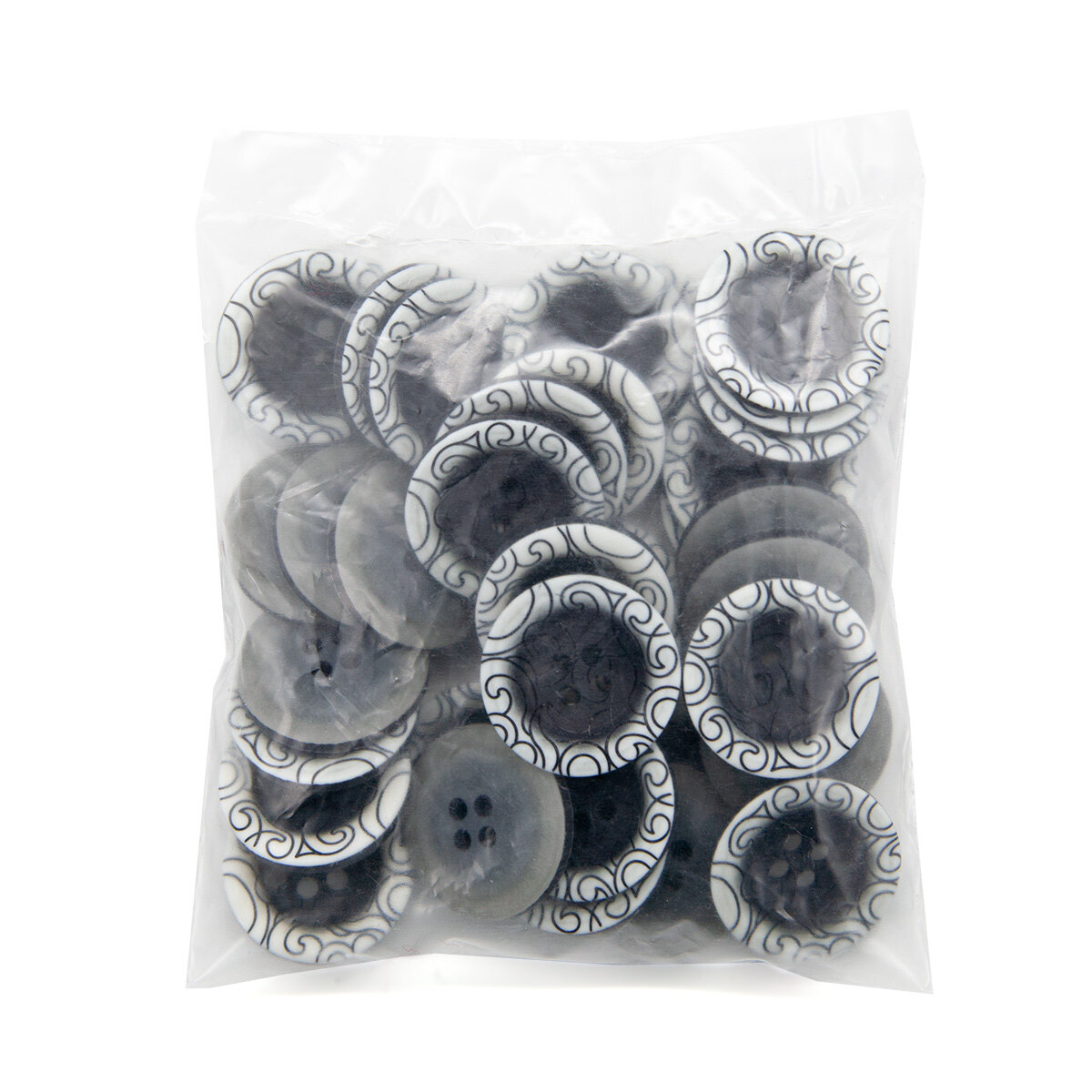Купить Пуговицы 36L (23 мм) Протос 'Узор', 4 прокола, пластик (черный и белый матовый), 36 шт