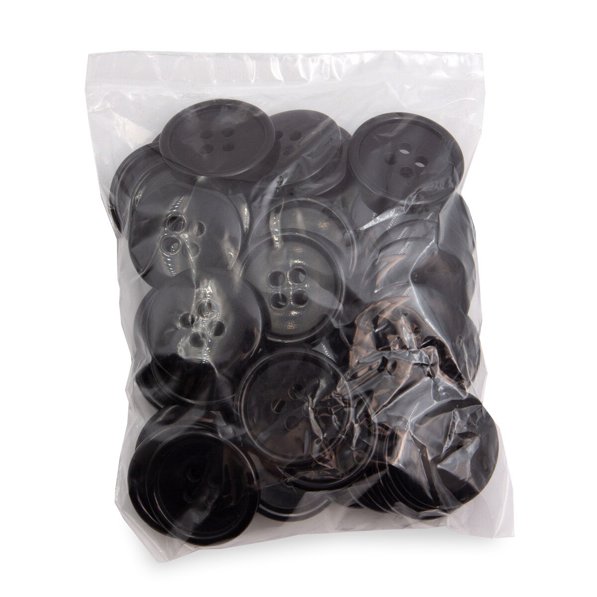Пуговицы 40L (25 мм) Протос, 12874/4, 4 прокола, пластик (черный матовый), 50 шт