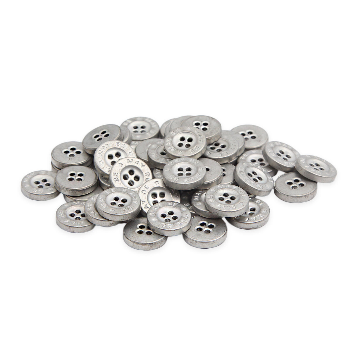 Купить 2102 Пуговица 'MAY BE' 26L (16мм) 4 прокола, металл, серебро, 50 шт