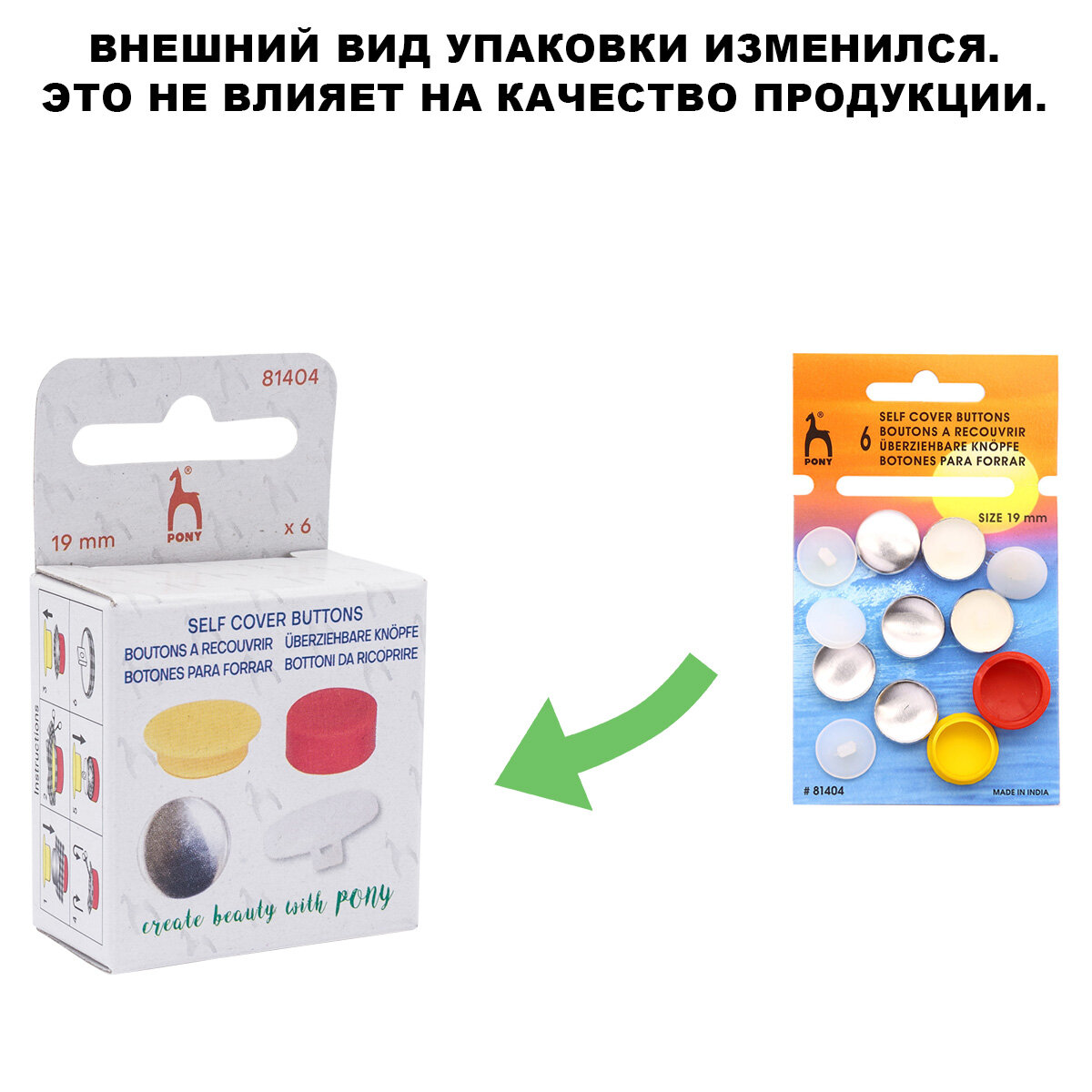 Купить Пуговицы на ножке под обтяжку 30L (19 мм) 6 шт + приспособление для обтяжки, PONY, 81404