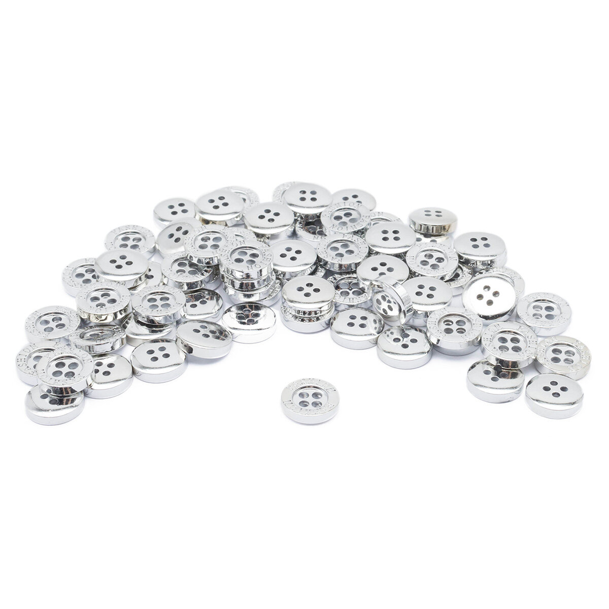 Купить NE77 Пуговица 18L (11 мм), 4 прокола, пластик (серебристый), 72 шт