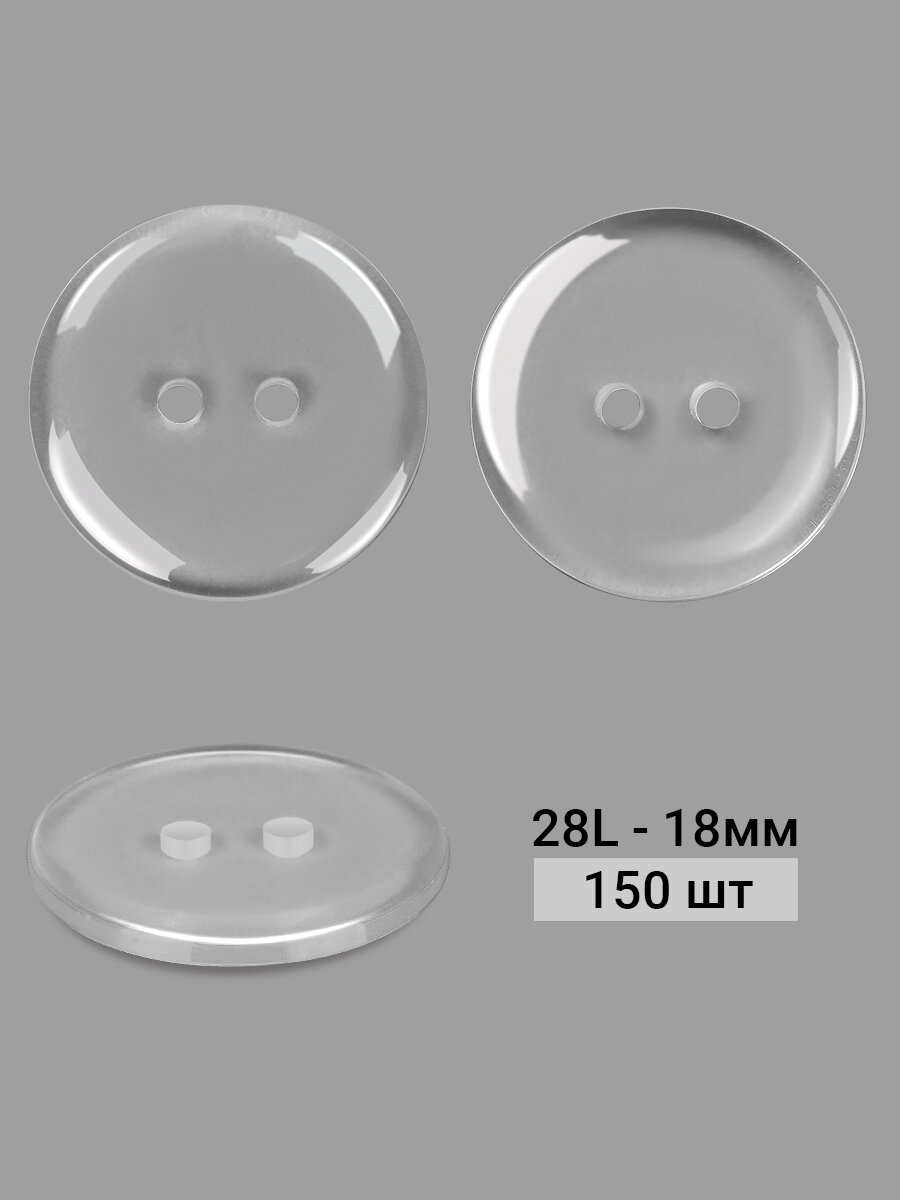 Купить Пуговицы пластик TBY BT цв. прозрачный 28L-18мм, 2 прокола, 150 шт