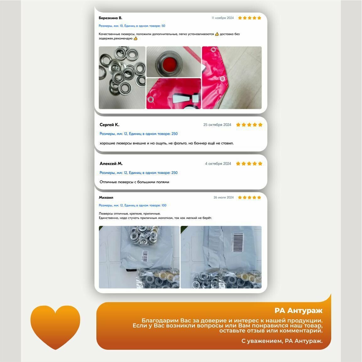 Ниже Вы можете прочитать отзывы на Люверсы для тента / баннера диаметр 10 мм, 50 шт. для тента, баннера, мягких окон., ознакомится с подробными характеристиками, посмотреть интересные обзоры и фотографии на Люверсы для тента / баннера диаметр 10 мм, 50 шт. для тента, баннера, мягких окон..