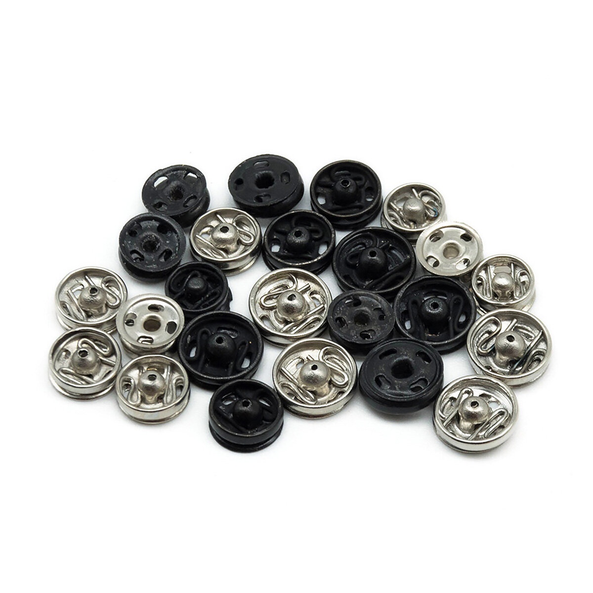 Купить Кнопки для одежды пришивные ассорти 5 мм, 6 мм, 7 мм, 24 шт, металлические, черные и серебристые, PONY