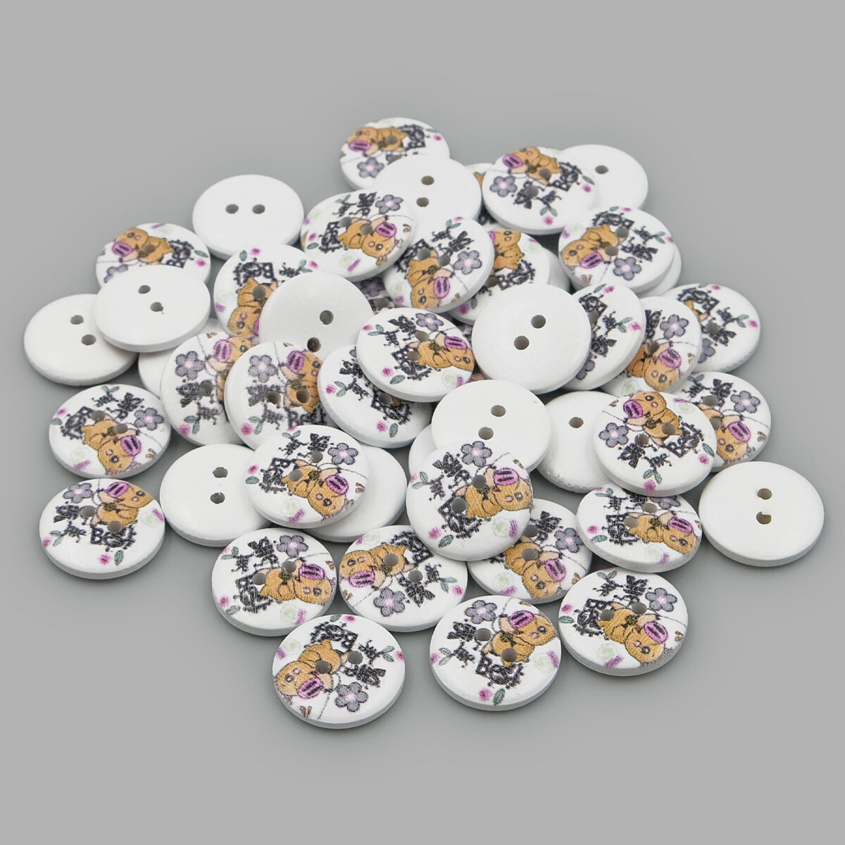 Пуговицы 'Мультяшные персонажи' 18 мм (28L), 50 шт, 2 прокола, дерево, Айрис (Вжик)